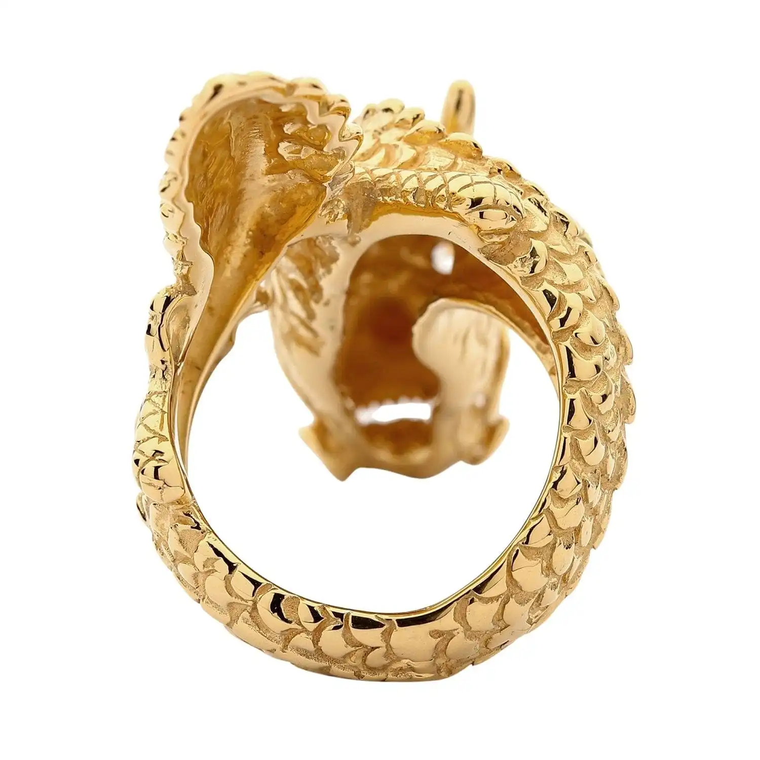 Dragons typically symbolise power over certain elements such as water, fire or air, this ring may not control these elements but it will capture your heart. This 14k yellow gold dragon ring will wrap around your finger in a majestic fashion, adding a sophisticated element to any outfit. Handmade by a master goldsmith, you can be reassured of this rings high-quality and longevity.