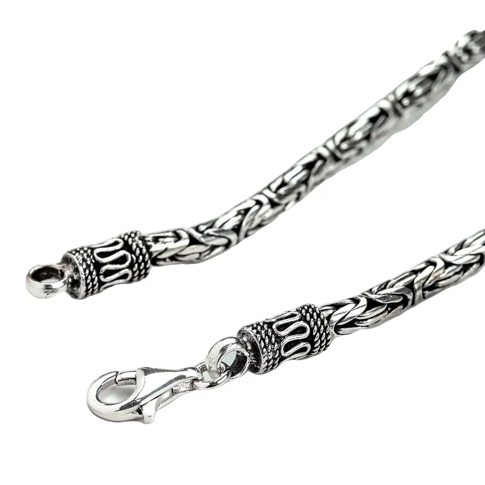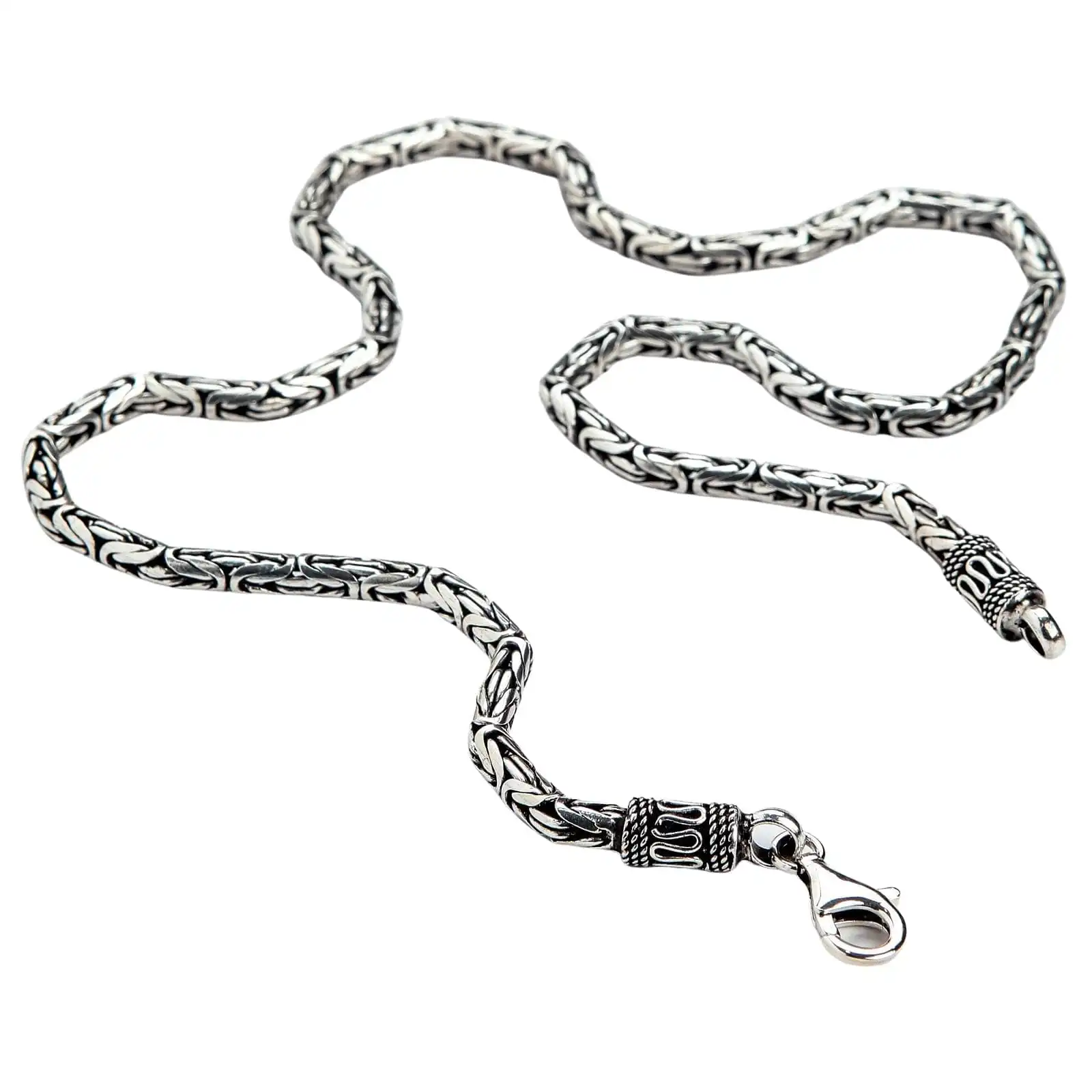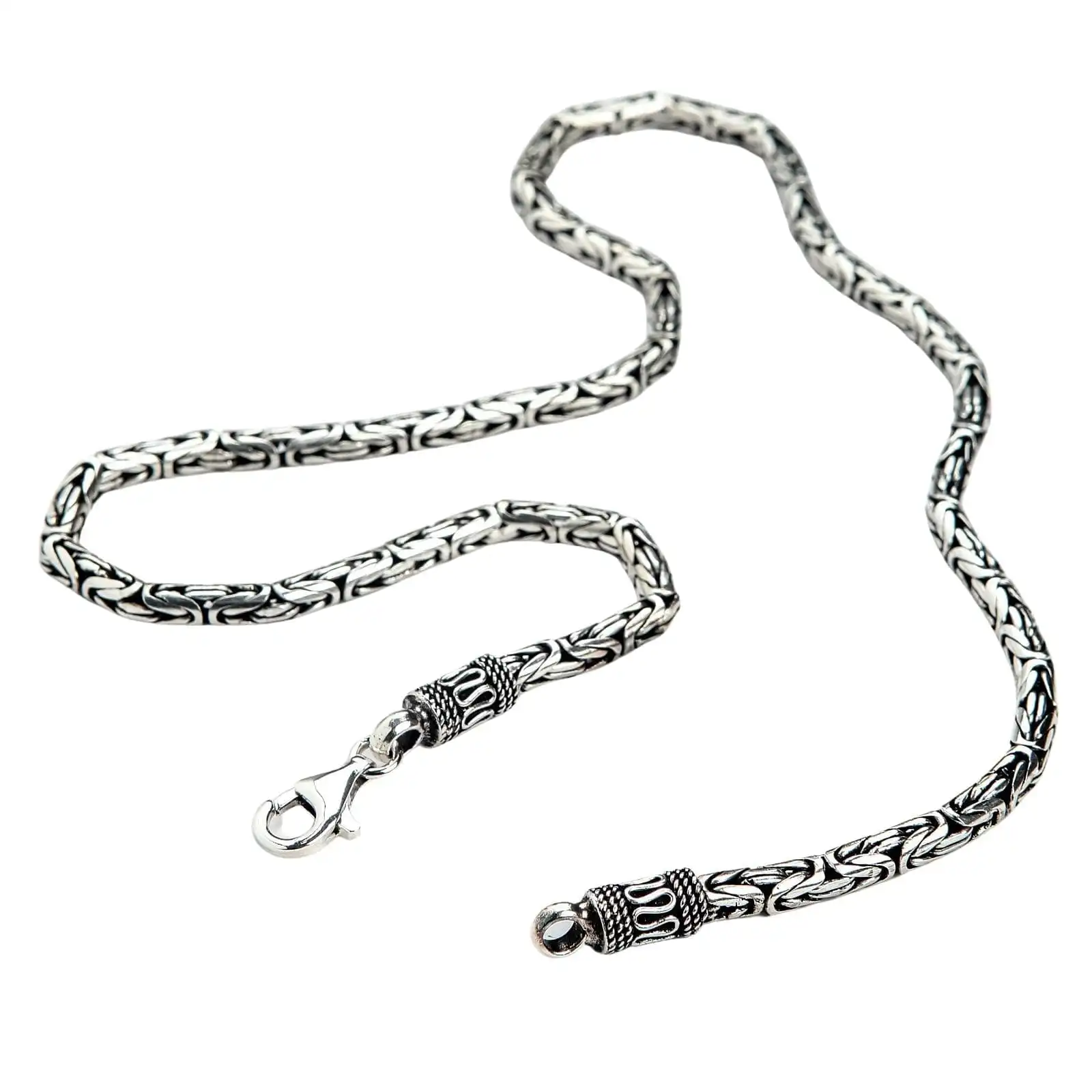 4mm Solid Sterling Silver Byzantine Bali Men’s Chain Necklace