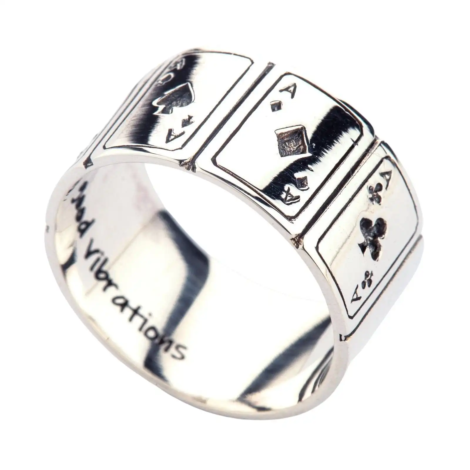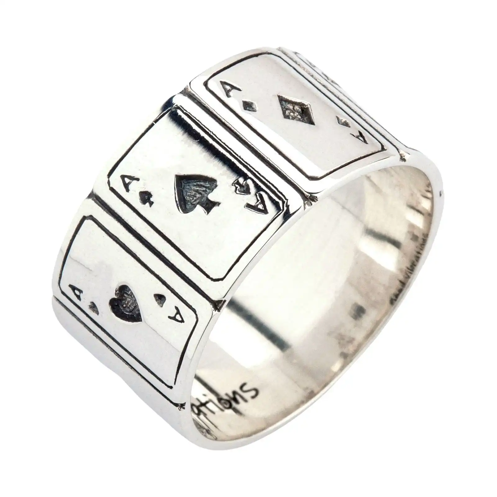 Solid 925 Sterling Silver Ace Cards Lucky Band Ring New