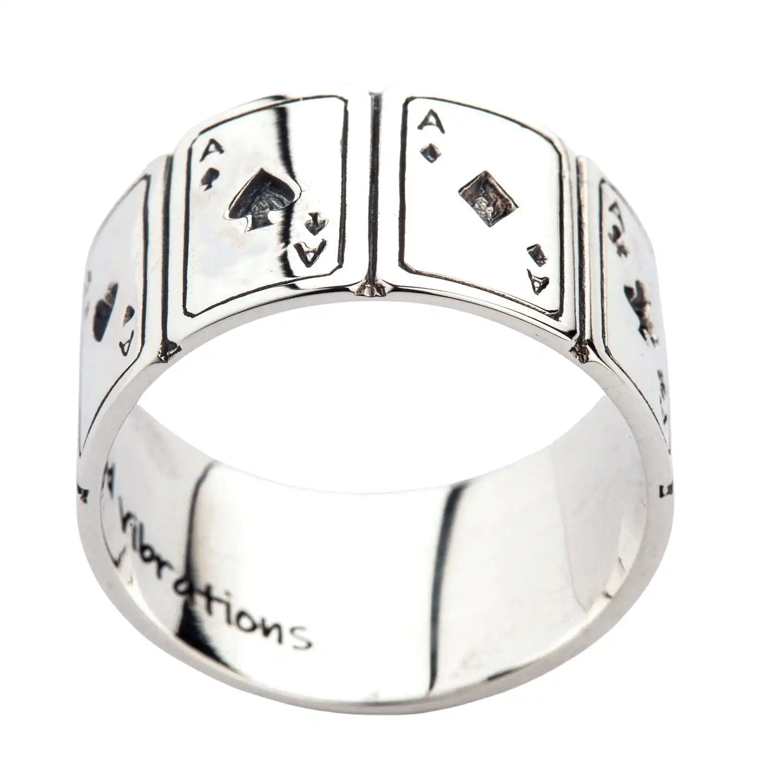 Every gambler wants to get an ace since it is a key to success. Slowly but surely, aces turned into a symbol of good luck and prosperity. If you play cards, you ought to have this symbol as your talisman. In our 925 Sterling Silver Ace Cards Band Ring, we incorporated the foursome of the most valuable cards in a deck.