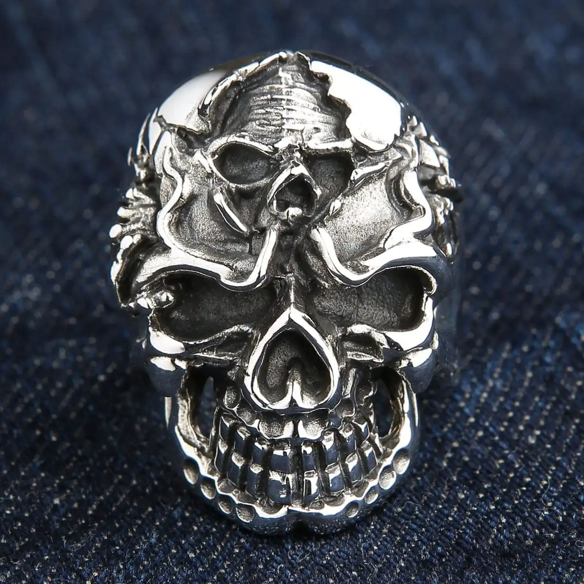 Taken from the darkened depths of the underworld, our Death Skull Ring introduces gothic style into any look. From the main skull head, gnarled fingers claw their way out as a second skull makes itself known. Entirely polished, this dramatic ring tells its own store – passing a warning glance over everyone that passes by.
