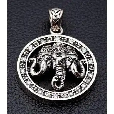 Our silver Ganesh Pendant introduces this symbolic character into your collection. An image of intellect and wisdom, our silversmiths have crafted his impressive form out of solid sterling silver. His curved trunk and embellished headwear pick him out from the rest while the trio design ensures every angle of detail is appreciated. A single black stone encrusts the centre of the piece while clear stones shimmer out from the studded halo.