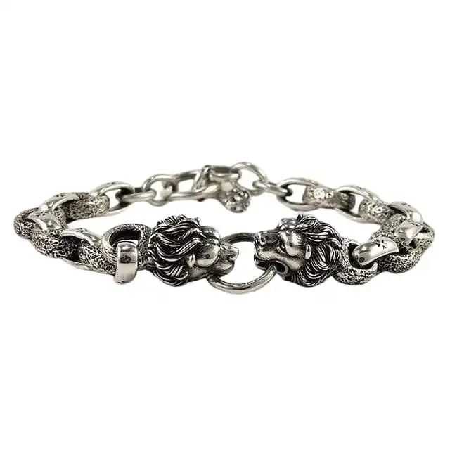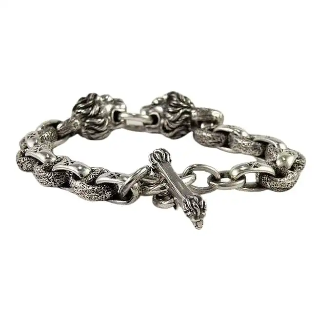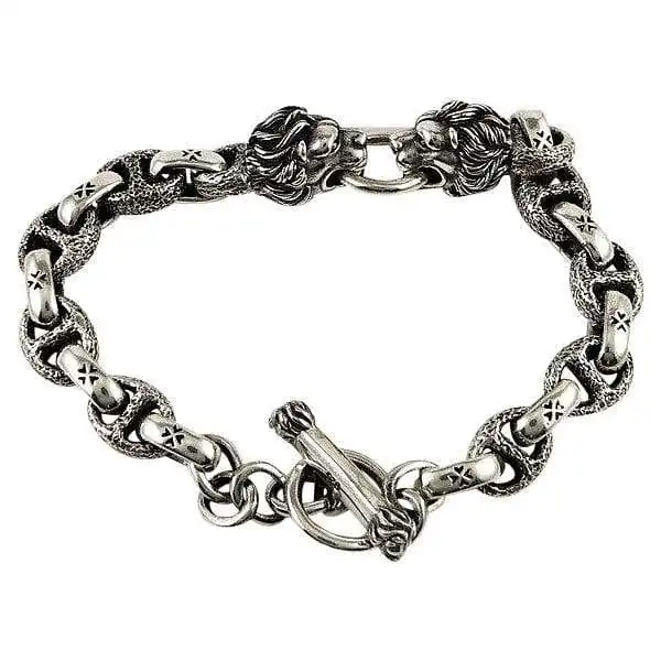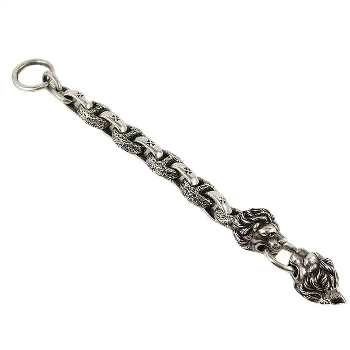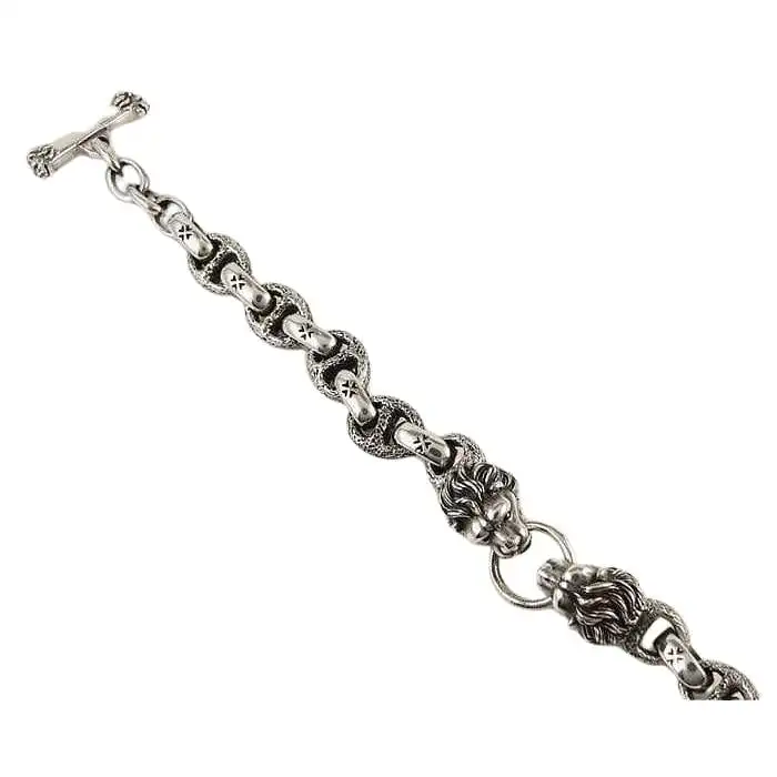 925 Sterling Silver Lion Cross Link Chain Bracelet