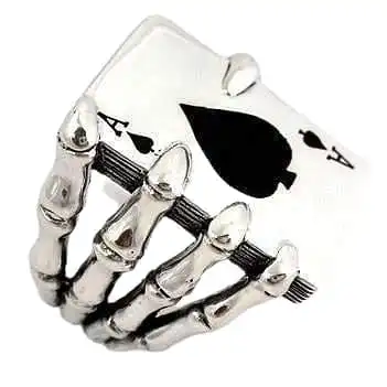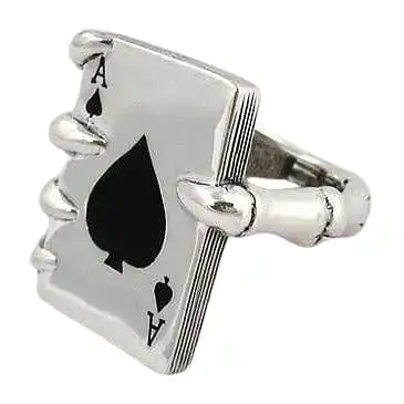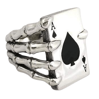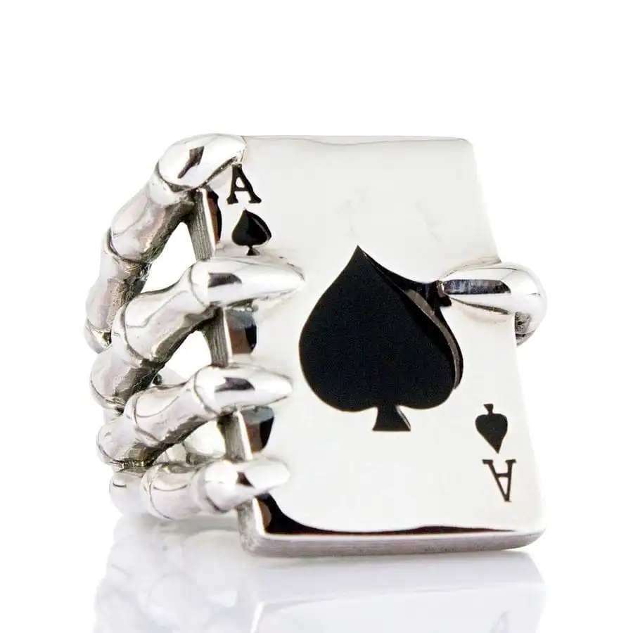 Play the strongest card and take a chance on luck with this standout ring. A truly unique piece that will impress everyone, it sees a gothic skeletal hand grasping your finger. Between its claw-like bones, an Ace of Spades card is presented – but what will this mean for your future? An accessory for those bold enough to stand out, this accessory will make a man out of any boy.