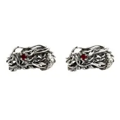 Bold, manly and blazing, these large gothic claw studs are quite simply one-of-a-kind. Each gripping claw displays a dazzling flaming ruby red gemstone. With their distinguished gothic design and fiery appearance, you’ll definitely be catching eyes when bearing these claws. Carved by our master silver-smith and made entirely from solid sterling silver, these red gothic claw earrings are a fine piece of jewellery that will not only stand out, but will stand the test of time.
