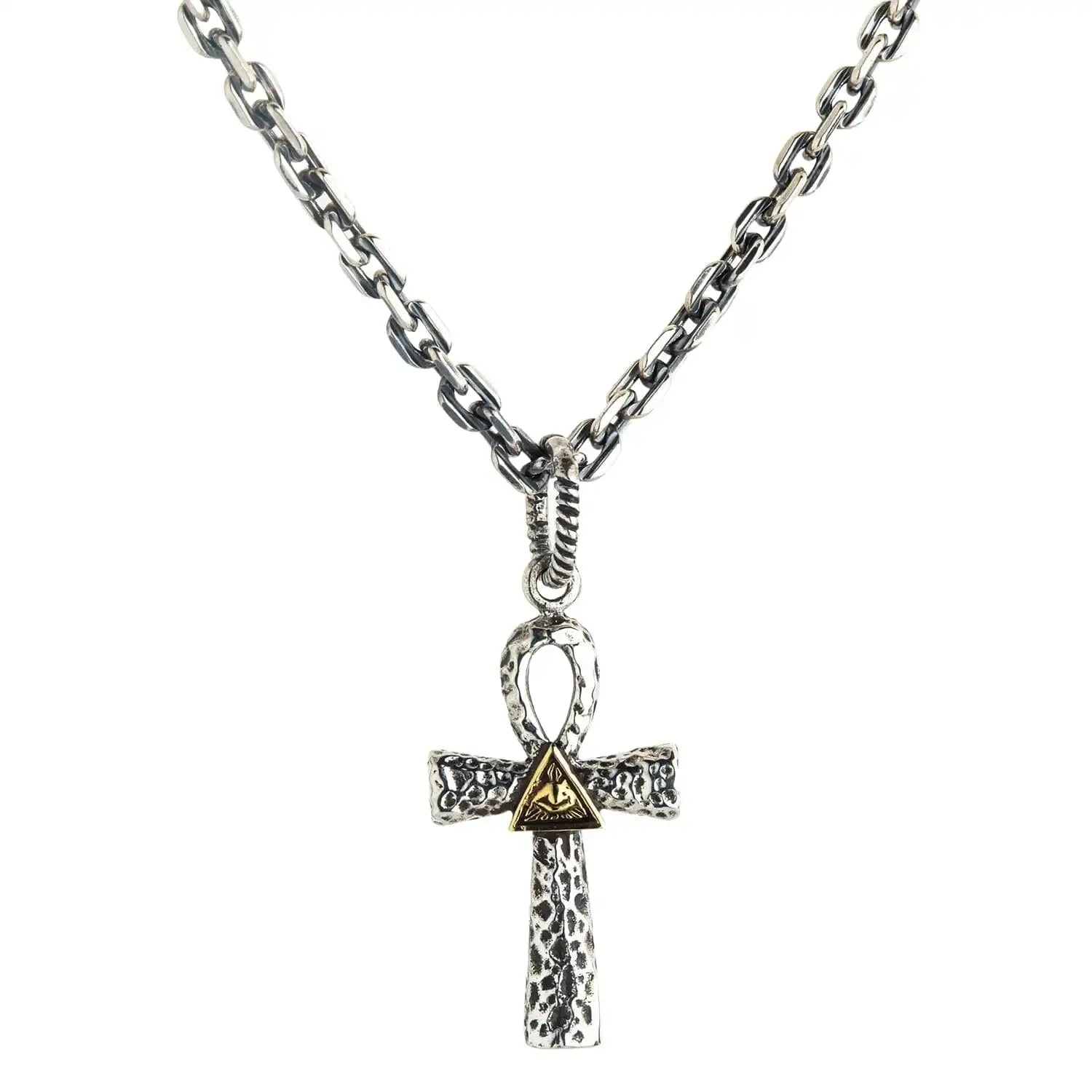 925 Silver All-seeing Eye of God Ankh Pendant Necklace