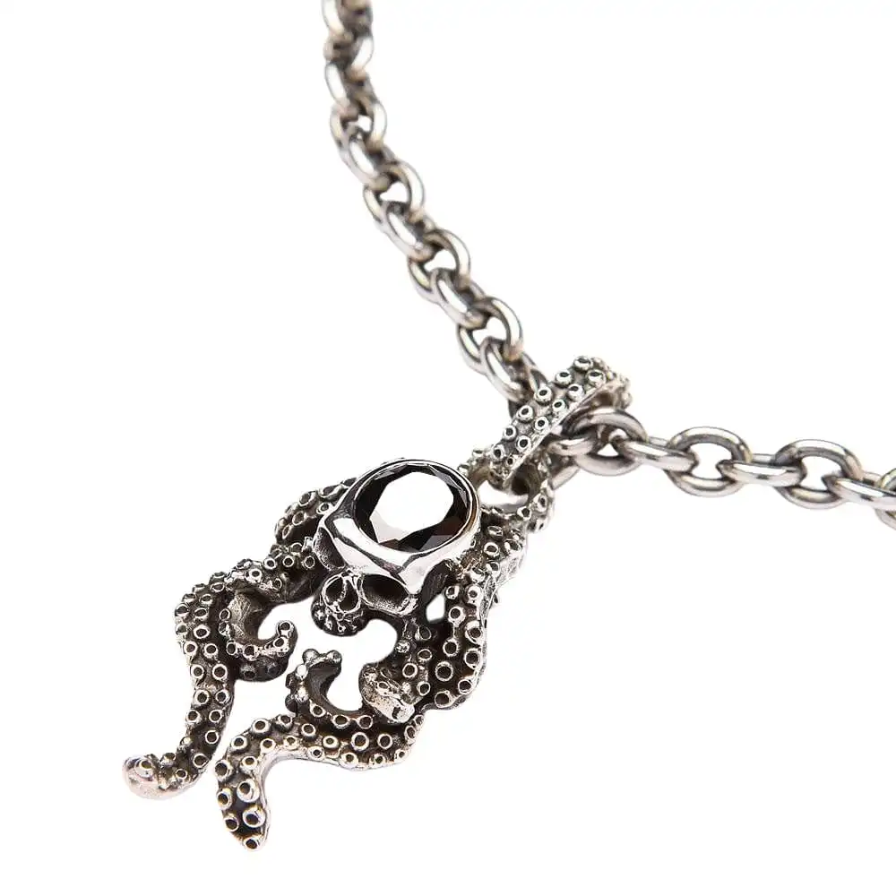 One of the most prominent symbols of the underworld joined forces with the most mysterious creature of the underwater kingdom to offer up some of the coolest necklaces in Bikerringshop’s collection. Made to impress, our Black Onyx Gothic Skull Octopus Necklace is a real godsend for individuals who want to stand out.