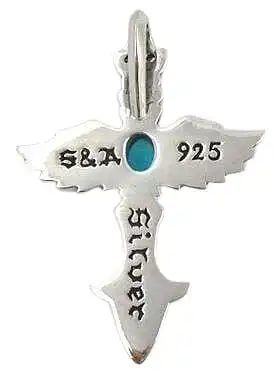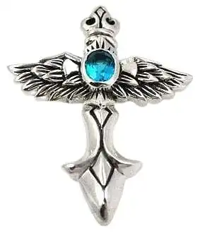 This Blue topaz Cross Wings Pendant is a tidbit for Gothic fans. It masterly combines the sublime sheen of silver, Gothic symbolism, and the beauty of the blue mineral.