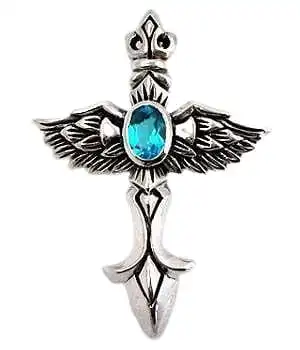Looking at these detailed wings, you will immediately have associations with angels. It may seem that angels have no connection with Gothic because it is gloomy and even sinister. However, Gothic has close ties with Christianity since it evolved from the architectural style characteristic of cathedrals and churches. Their magnificent interiors and sculptures served as inspiration for Gothic art, including jewelry. Who knows, maybe angel wings are able to become your protection from adversity?Wings are not the only thing that makes this pendant Gothic. Take a closer look and you’ll notice a few more familiar symbols. The pendant itself resembles a cross. It has a spearhead design on the bottom. It is crowned with the fleur-de-lis symbol. It has a large blue stone at its heart. Finally, this pendant is made of sterling silver, the favorite metal of Gothic enthusiasts. All these elements make the Blue topaz Cross Wings Pendant a quintessence of Gothic jewelry.