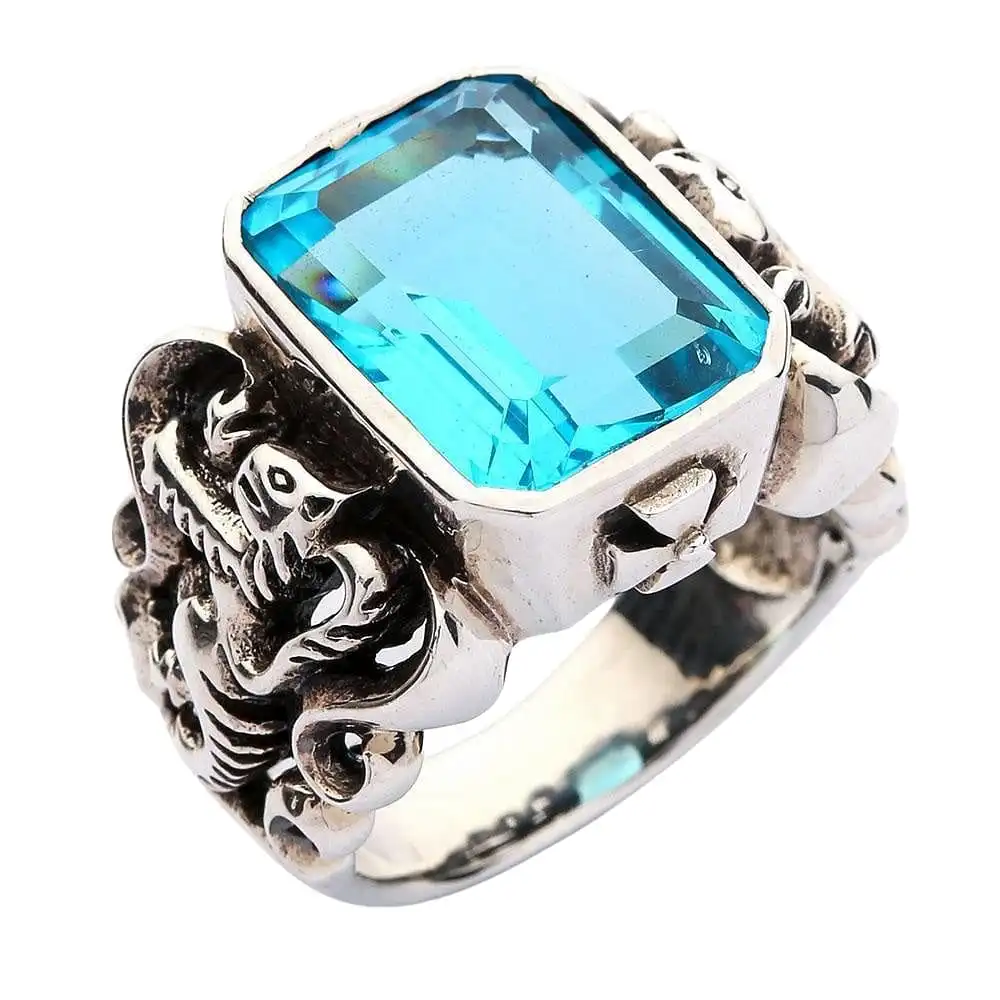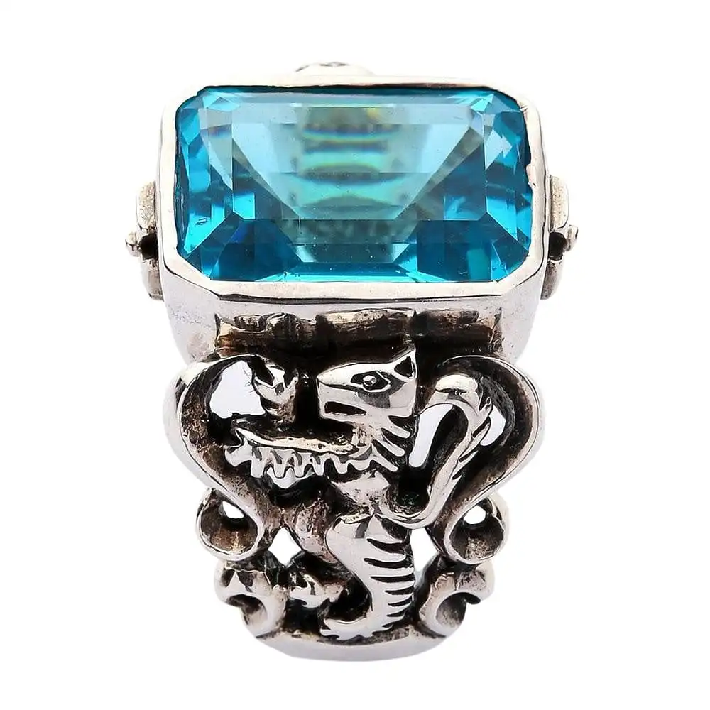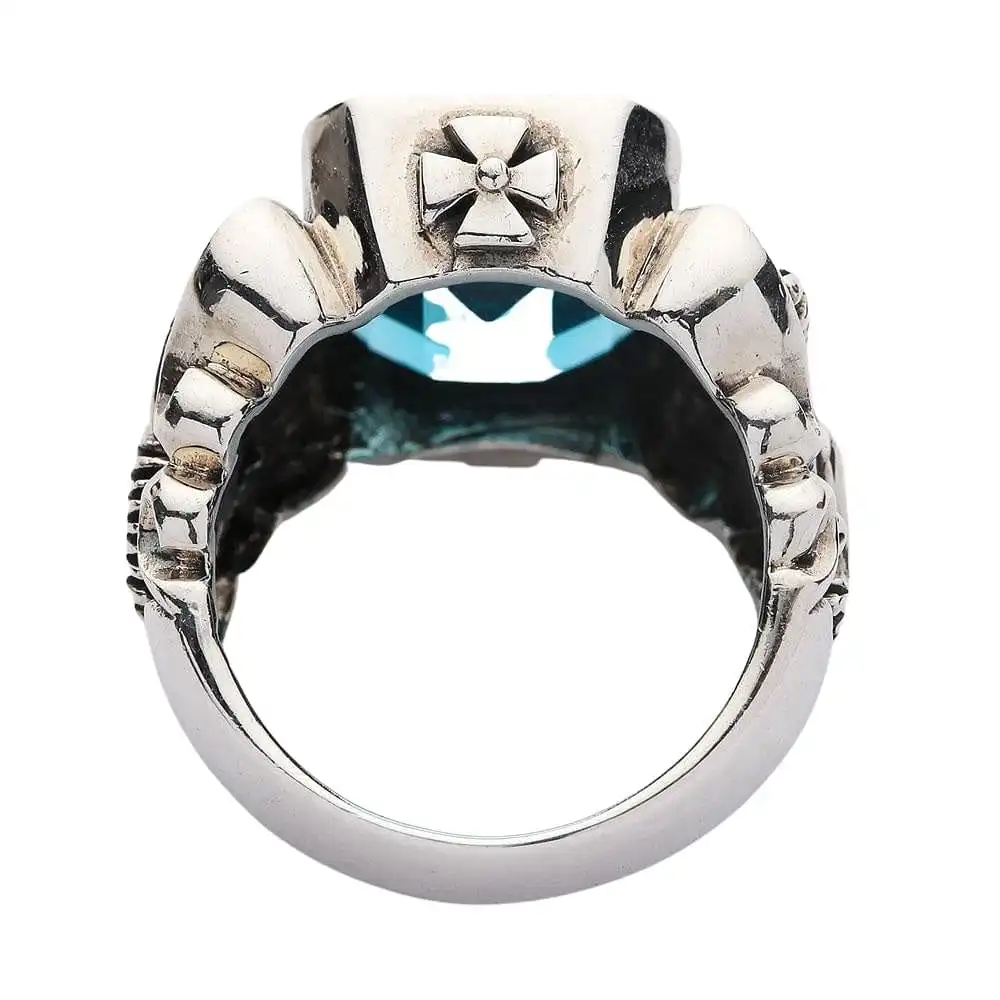 - Come with huge blue topaz CZ stone.