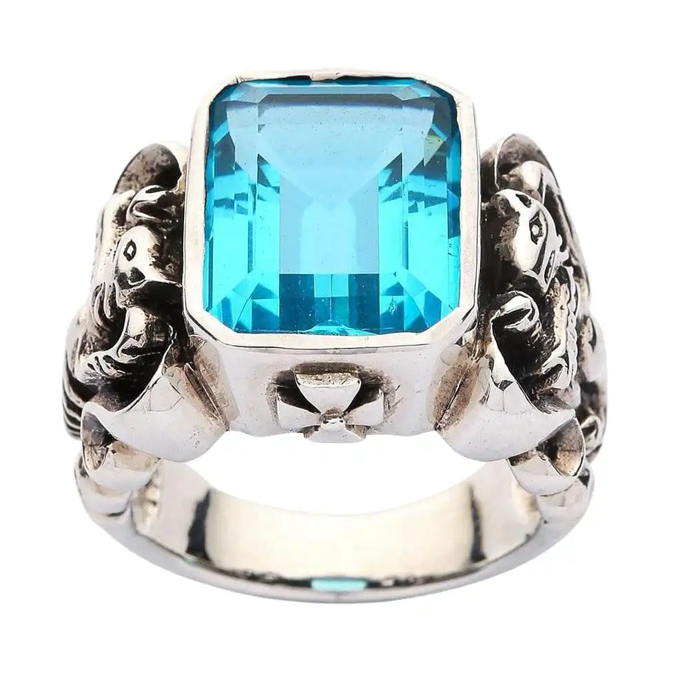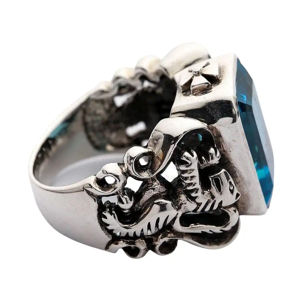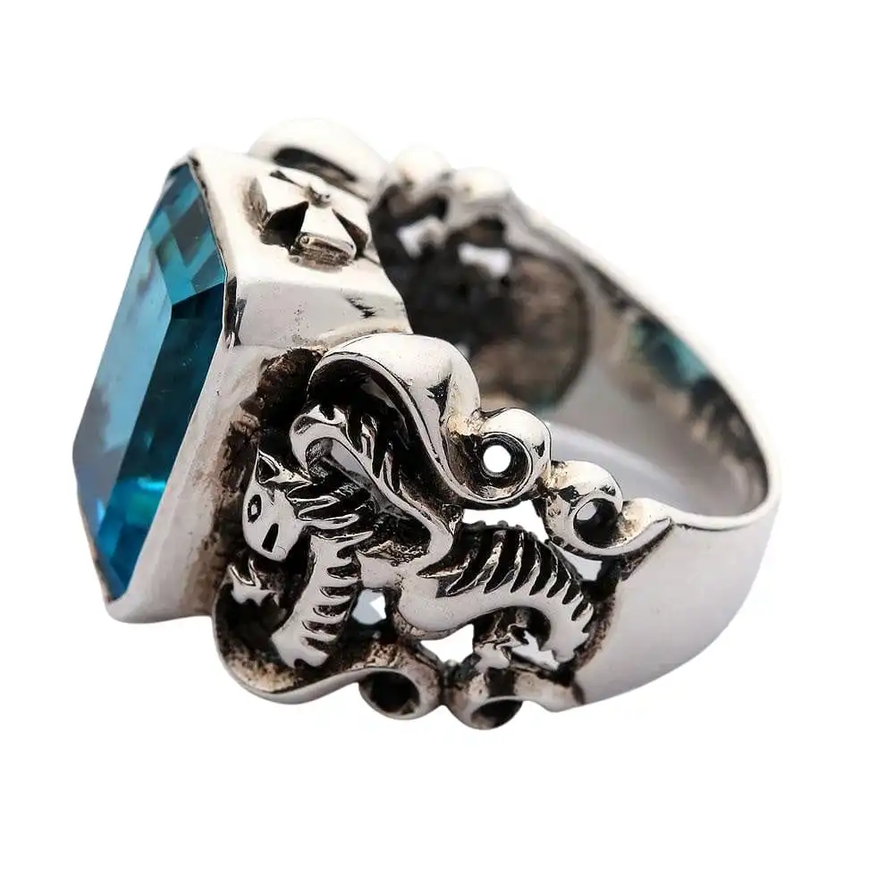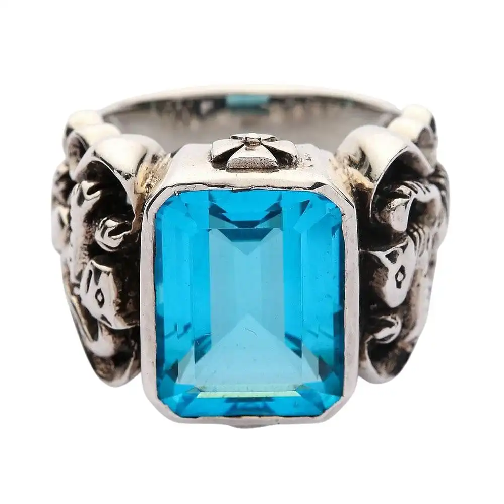 - Come with huge blue topaz CZ stone.