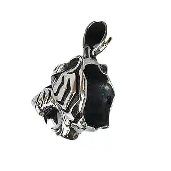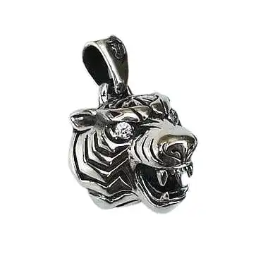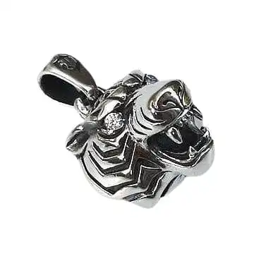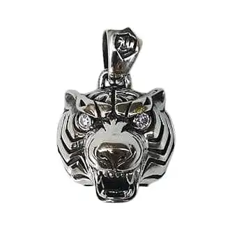Diamond Eyes Sterling Silver Tiger Head Men’s Pendant