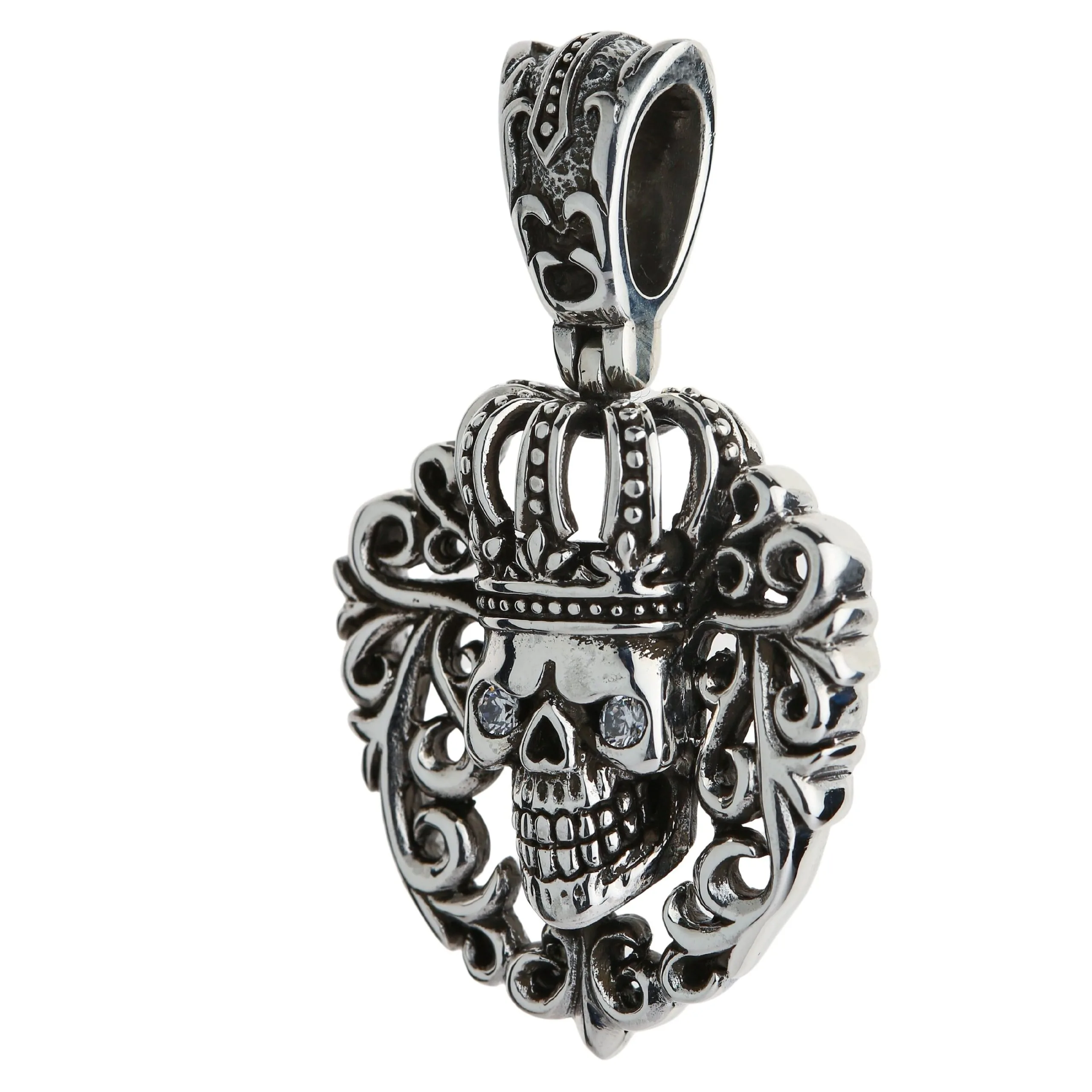 Sterling Silver Diamond Eyes Queen Crown Skull Pendant