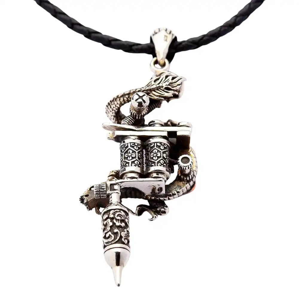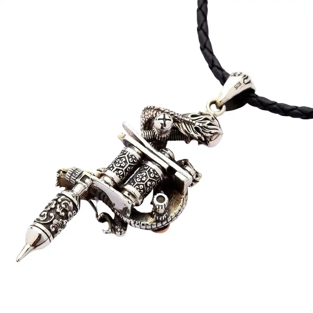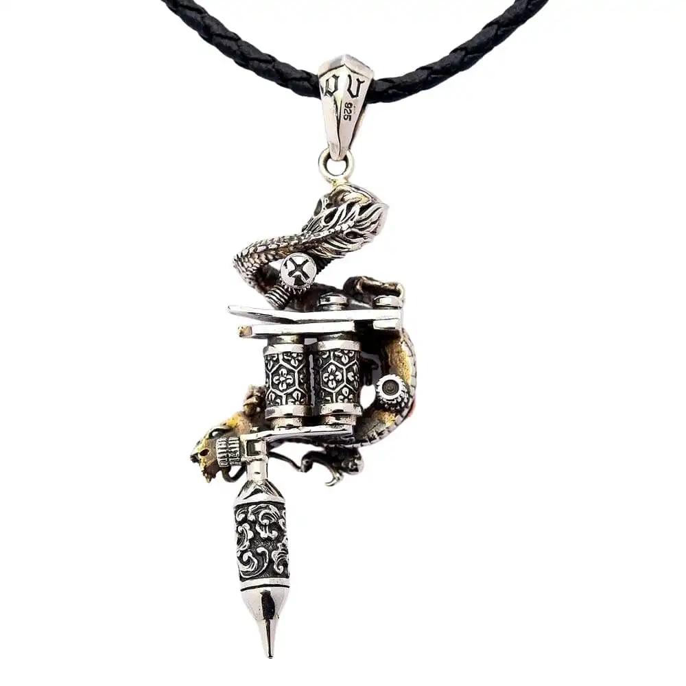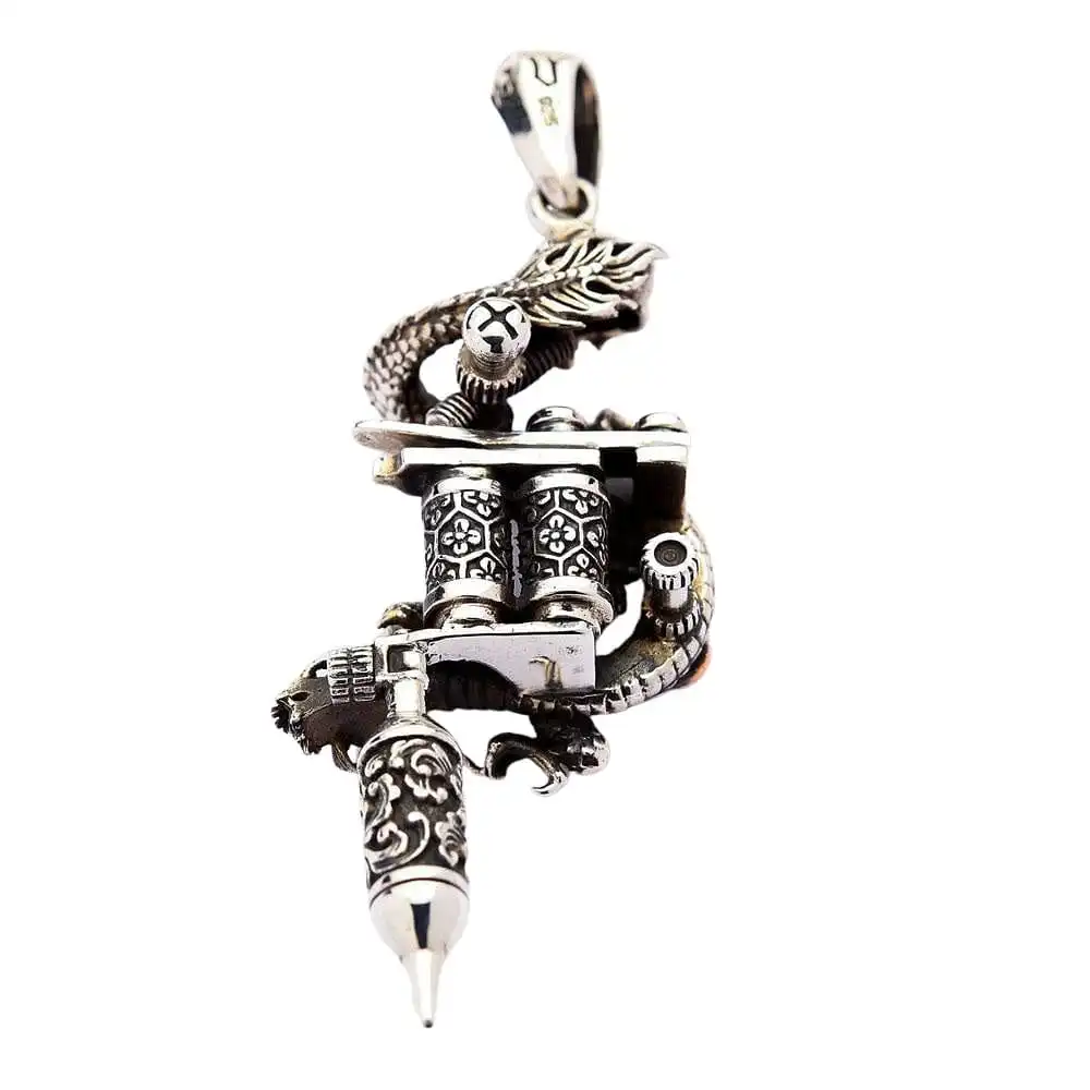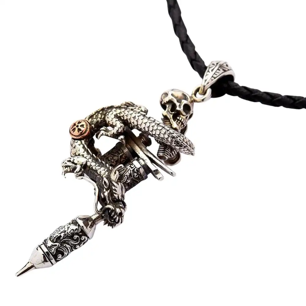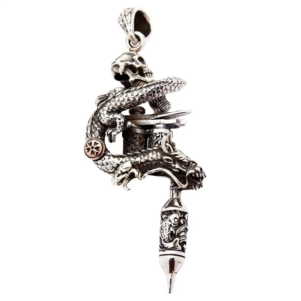 Can you imagine a real biker without tattoos? Can you imagine him without hard-to-ignore jewelry? We combined both these passions into our Dragon Skull Tattoo Machine Gun Pendant.