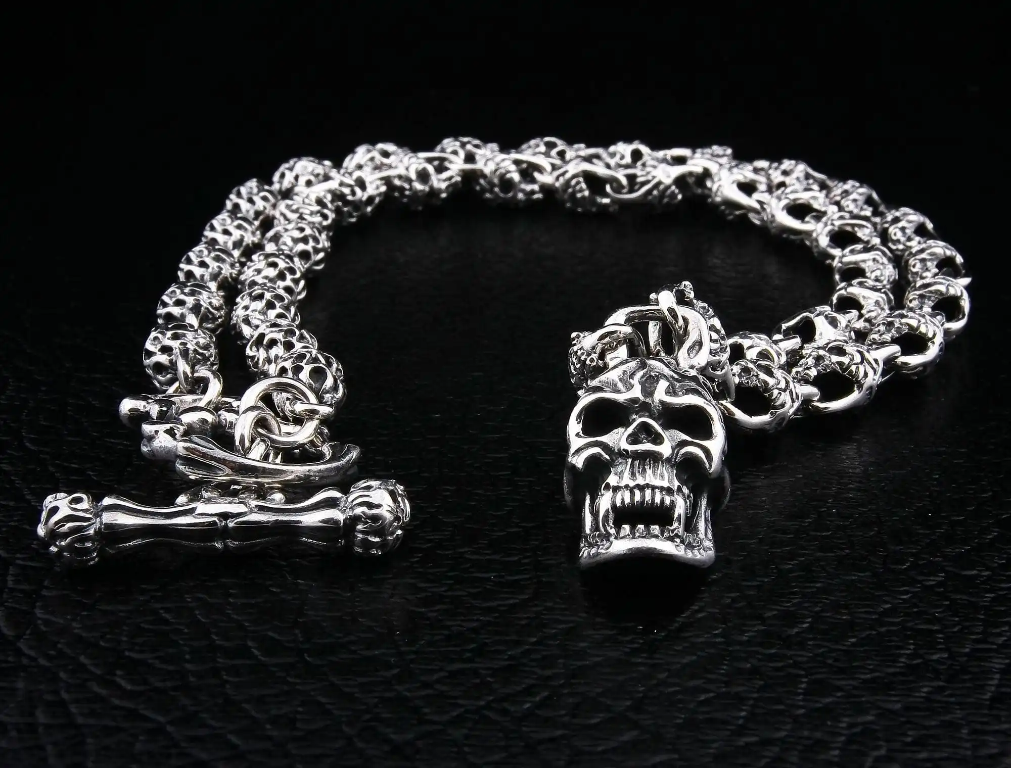 Supremely heavy and thick and carefully crafted to perfection, our flaming skull silver chain necklace is produced from the highest quality 100% solid sterling silver for a neck chain you can be proud to wear that won’t wear out on you!