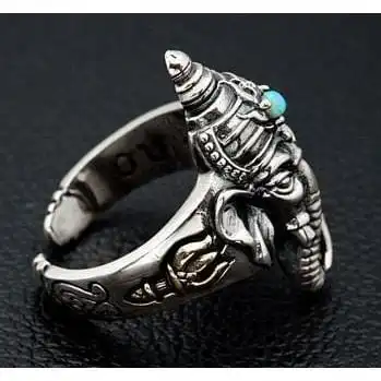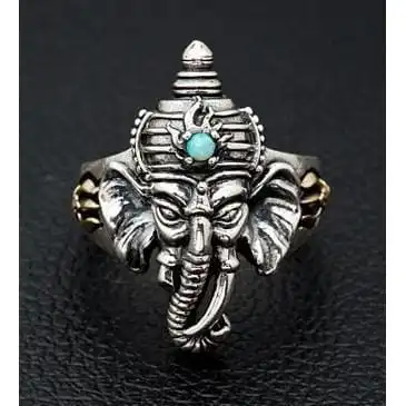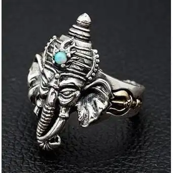 A sign of great intellect and wisdom, our Ganesh Turquoise Sterling Silver Ring is both spiritual and stylish. Large and dominating, it features the engraved head of this powerful guide complete with the mystical glow of a round turquoise stone. The ring boasts an impressive amount of detail that promises to impress all that lay eyes on it.