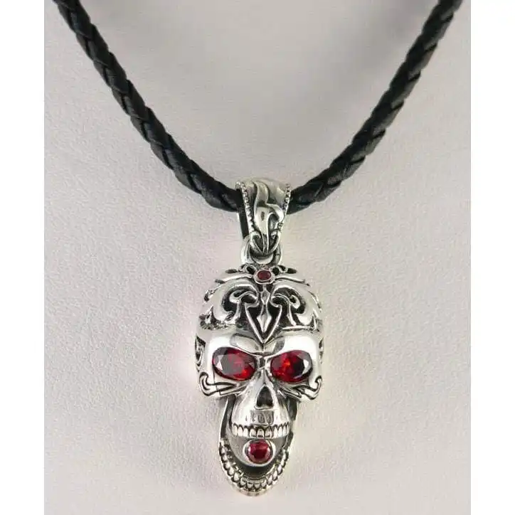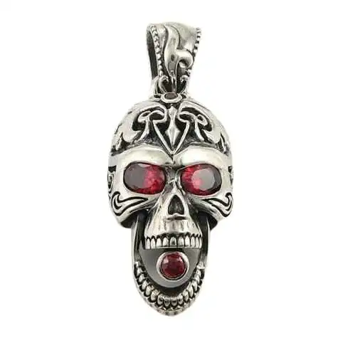 Garnet Eyes Ghost Rider Sterling Silver Skull Biker Men’s Pendant