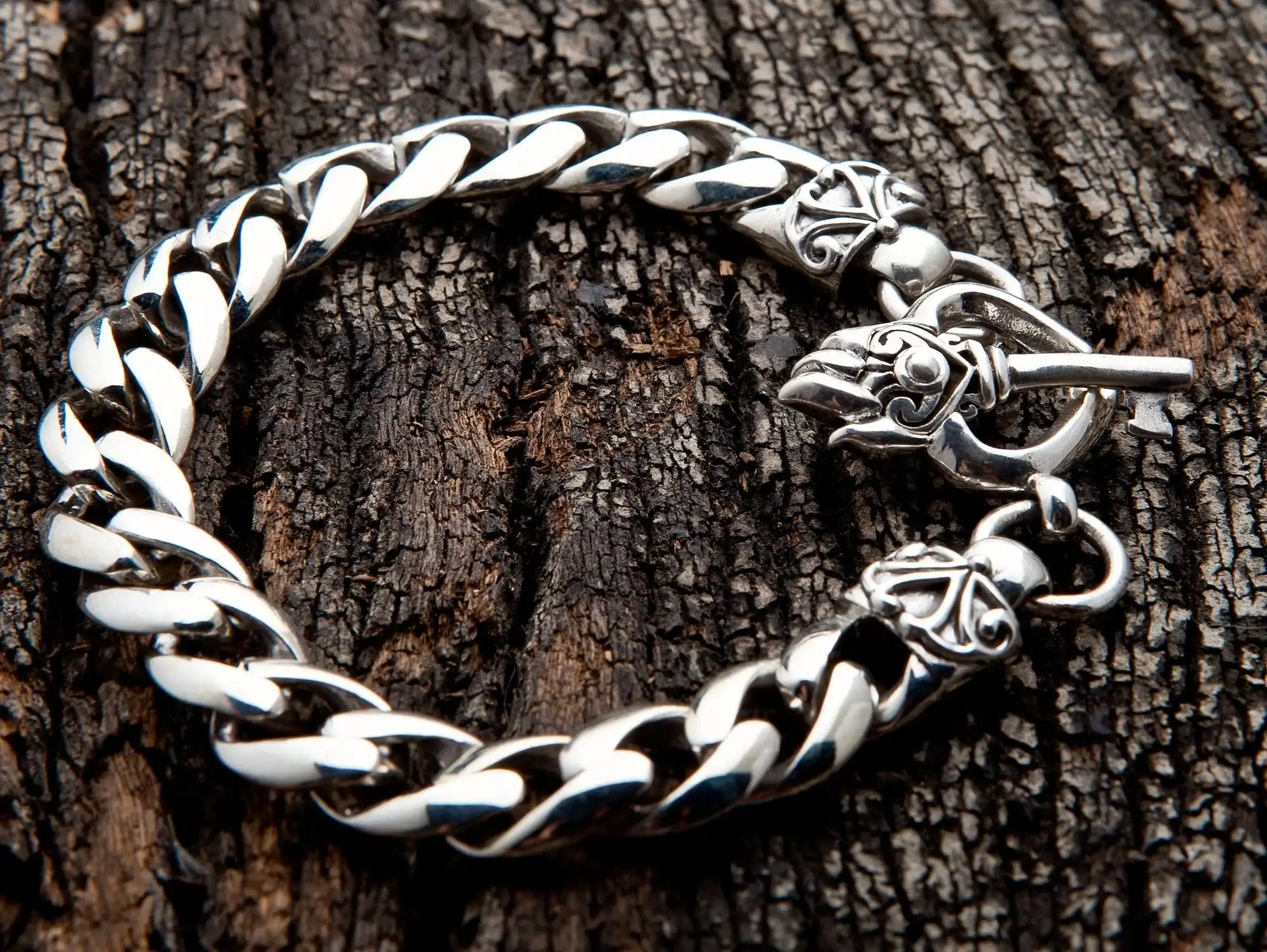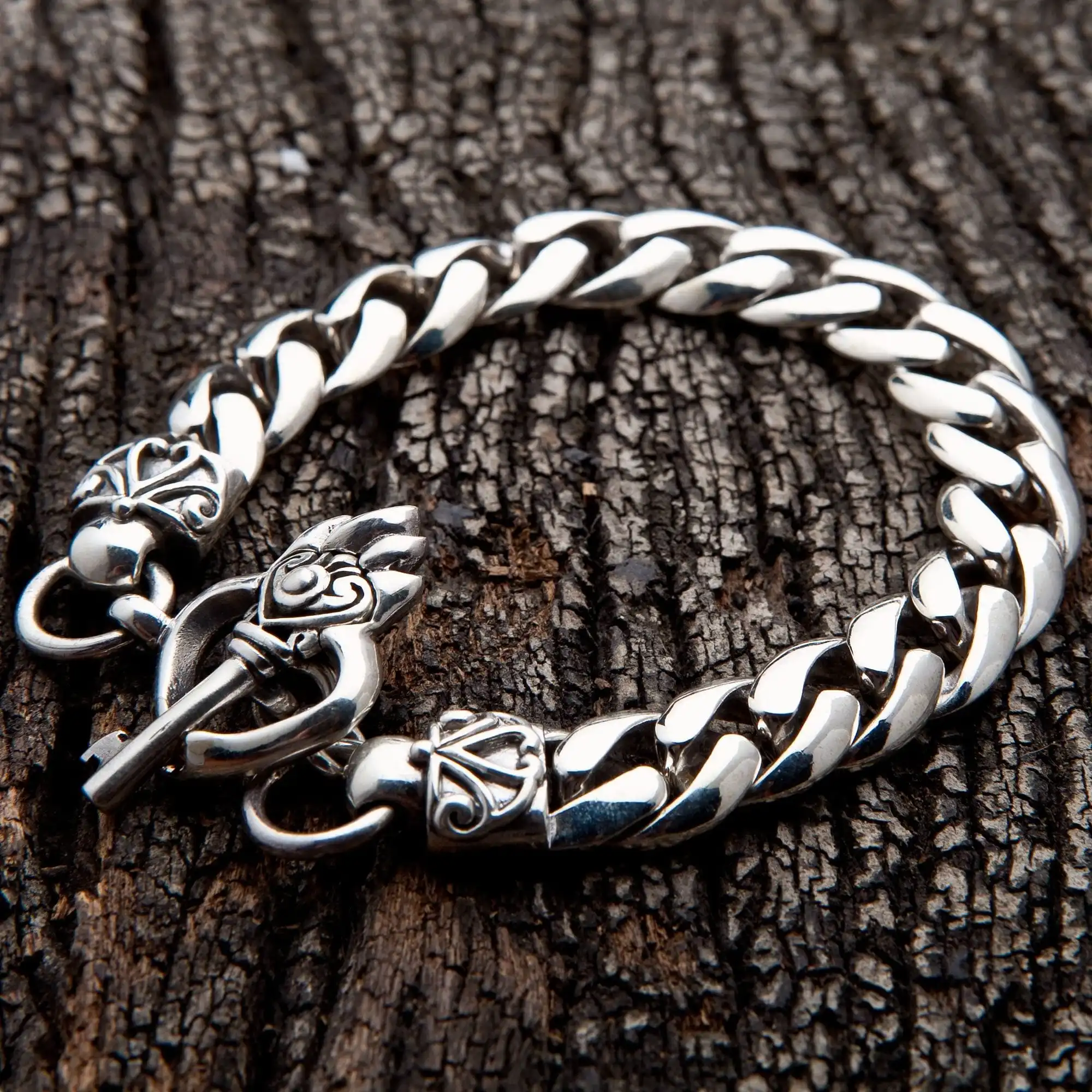 Wear your heart on your wrist with this unique tribal heart key bracelet, proof that even the toughest of biker men have feelings, even if they only shine through in jewellery form! While the bracelet design can be taken literally – indicating a key to open a heart, it can also be an expression of freedom, mystery and fantasy. Take your own interpretation and enjoy the multiple facets of this design.