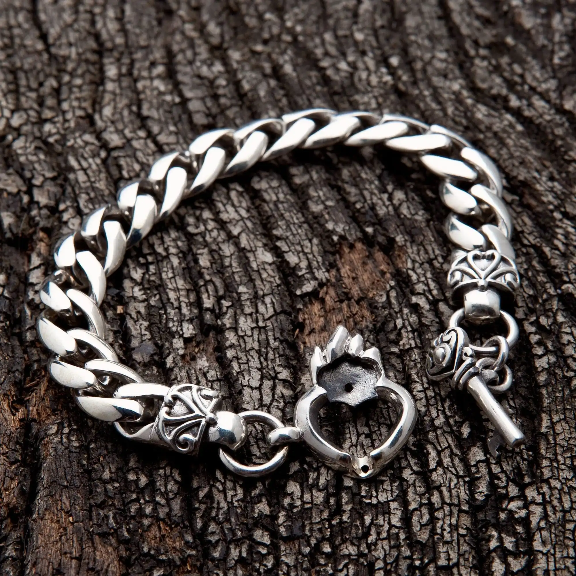 TRIBAL HEARTS KEY CLOSURE STERLING SILVER CHAIN BRACELET ~BRAND NEW