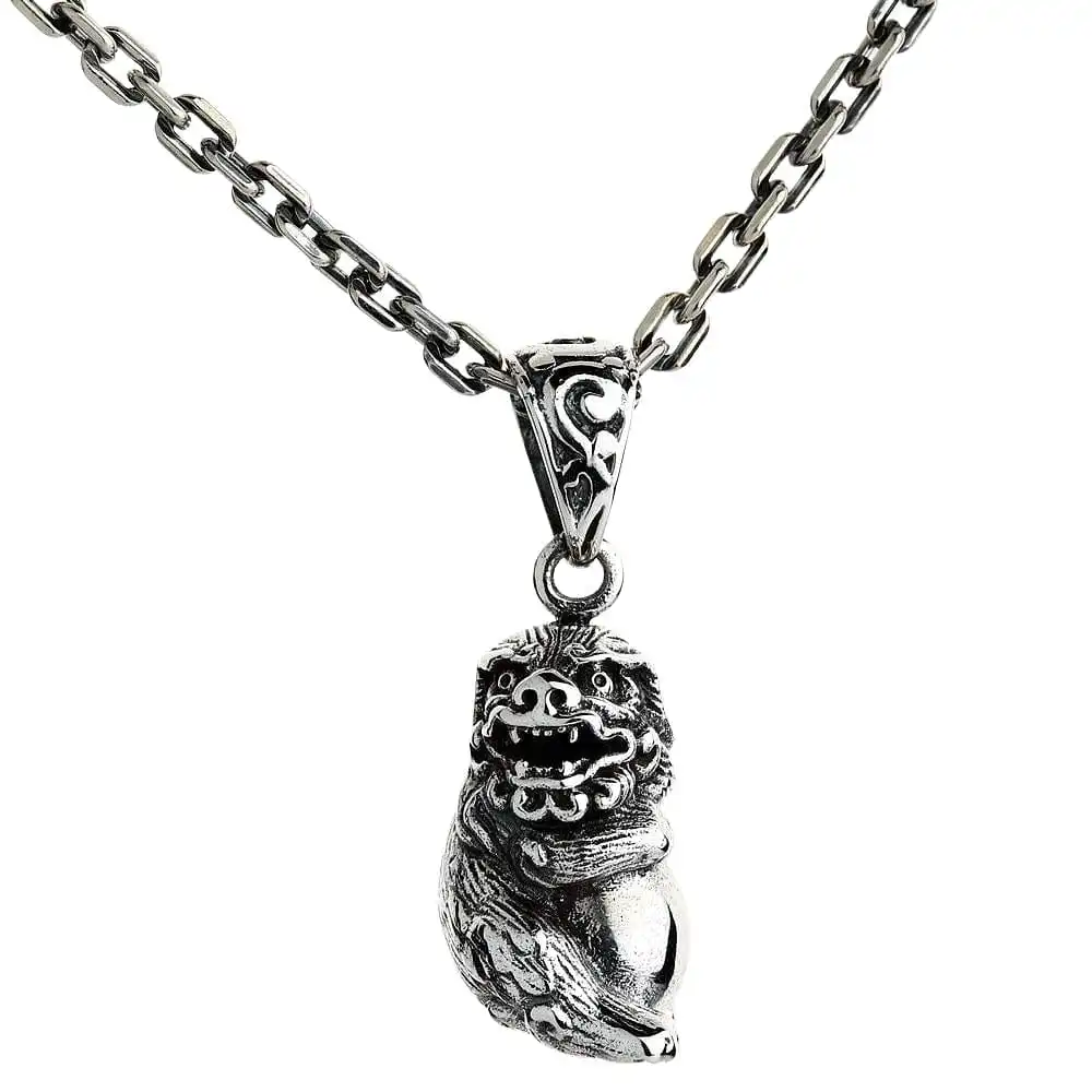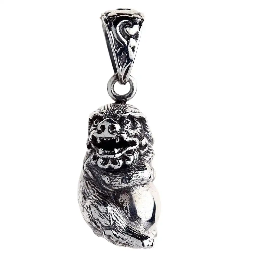 Sterling Silver Japanese Guardian Lion-Dog Komainu Pendant