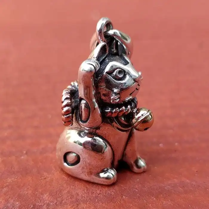 Maneki-Neko, otherwise known as a beckoning cat, is an amulet designed to make its owner prosperous and fortunate. The image of a cat with a raised paw is respected in both Japan and China, and lately, it’s been conquering the Western world. According to Oriental traditions, a white Maneki-Neko symbolizes happiness and purity, and this is exactly what we wanted to convey with our Japanese Maneki-Neko Cat Pendant in the noble silver finish.Everything about the cat’s appearance has a symbolic meaning. Its right paw raised attracts money and good luck, especially if you’re engaged in business. A cat wearing a collar with a bell becomes a protective amulet as well as a symbol of wealth and material abundance. A collar is a manifestation of respect and reverence for the cat, along with care, warmth, and comfort.