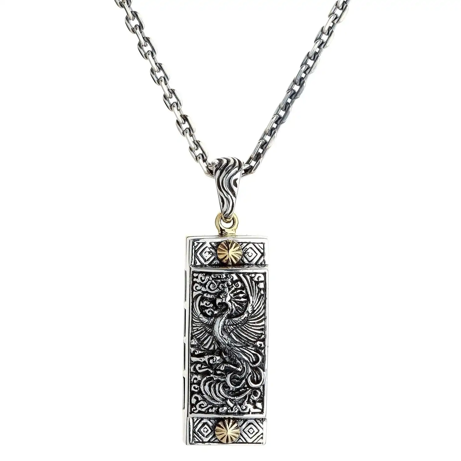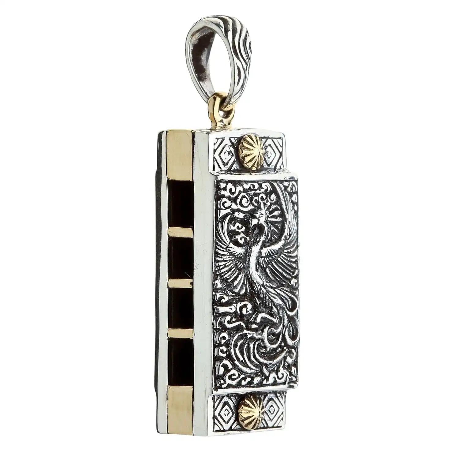 Sterling Silver Japanese Phoenix Harmonica Pendant Necklace