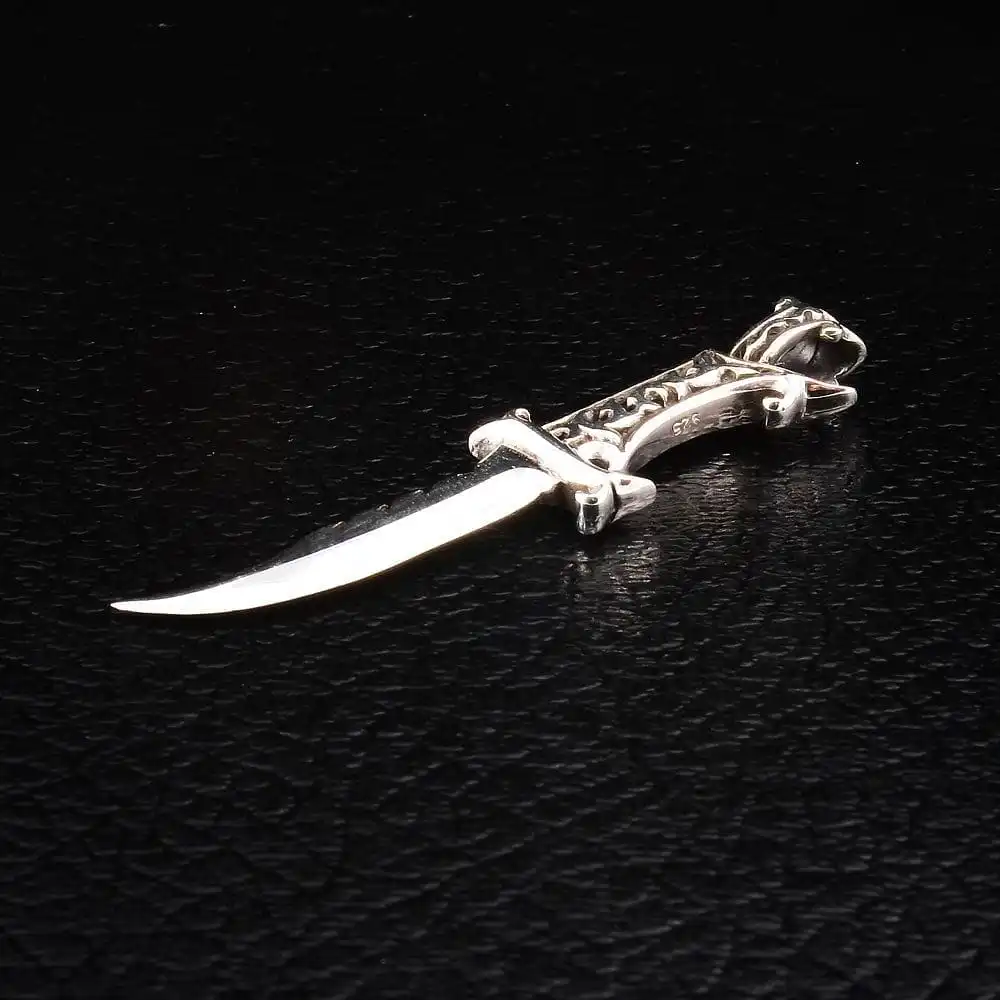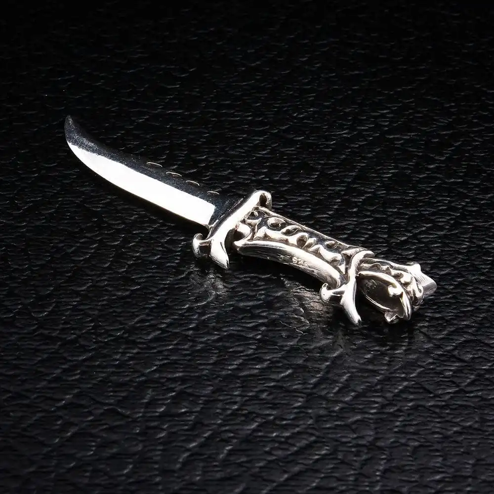 The brilliance and technicality of the Japanese Samurai sword is something envied and awed by knife makers around the world, since few can get close to something so delicately crafted. We’ve emulated this in our stunning men’s pendant, meticulously carved by our master silversmith to be a faithful, although slightly blunter, representation of the ninja weapon of choice.We use high grade sterling silver to make all our pendants, ensuring the .925 stamp is easily visible to remind you of its authenticity. The result is an item that is solid and heavy, polished to a high shine for the best finish.