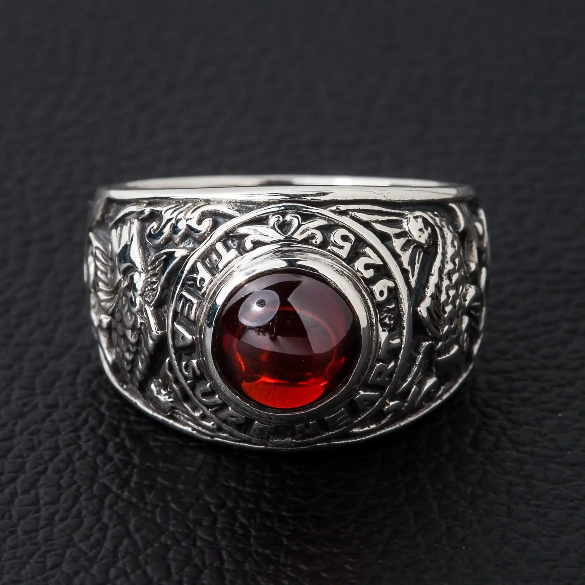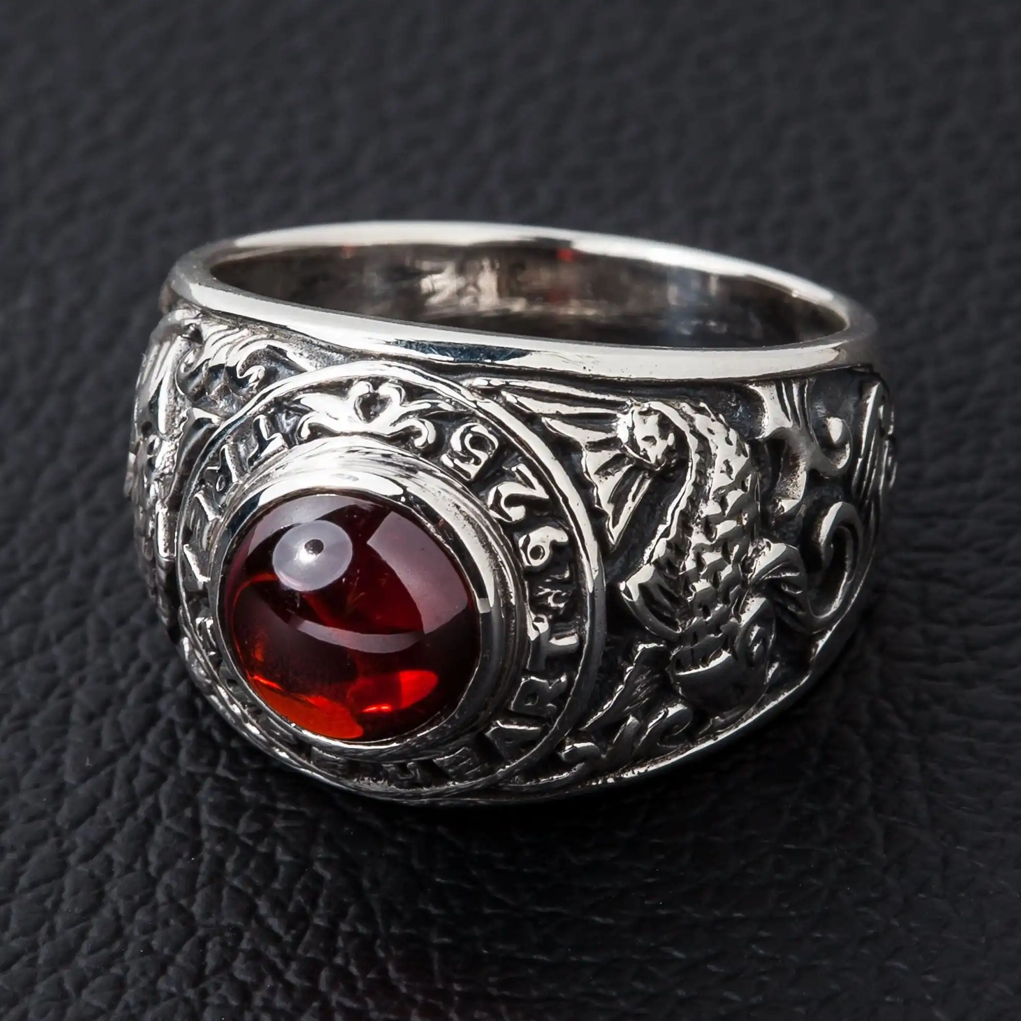 ROUND RUBY RED STONE 925 STERLING SILVER JAPANESE KOI RINGS ~NEW