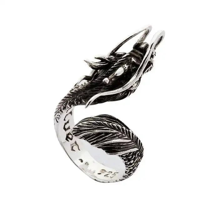 What can be better than an accessory with deep meaning? Only a deep-meaning accessory at an incredibly attractive price! Tame the power of a dragon with this red eyes sterling silver dragon ring. It wows with its exterior, commands attention due to precious materials, and saves your money thanks to the surprisingly affordable price tag.Wrapping around your finger, this large ring draws in admiration with a single glance. From a serious expression on the dragon’s face to meticulously carved scales, the attention to detail is mind-blowing.