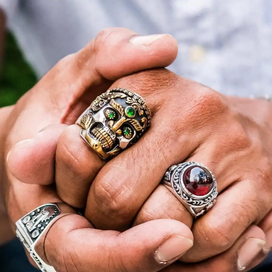Our master silversmiths have crafted this piece with care and skill. Using solid sterling silver, it has a heavy weight – best suited to the man with his own strength and confidence to carry it off. It tapers at the band for comfort and requires no additional accessories for it to stand proudly.
