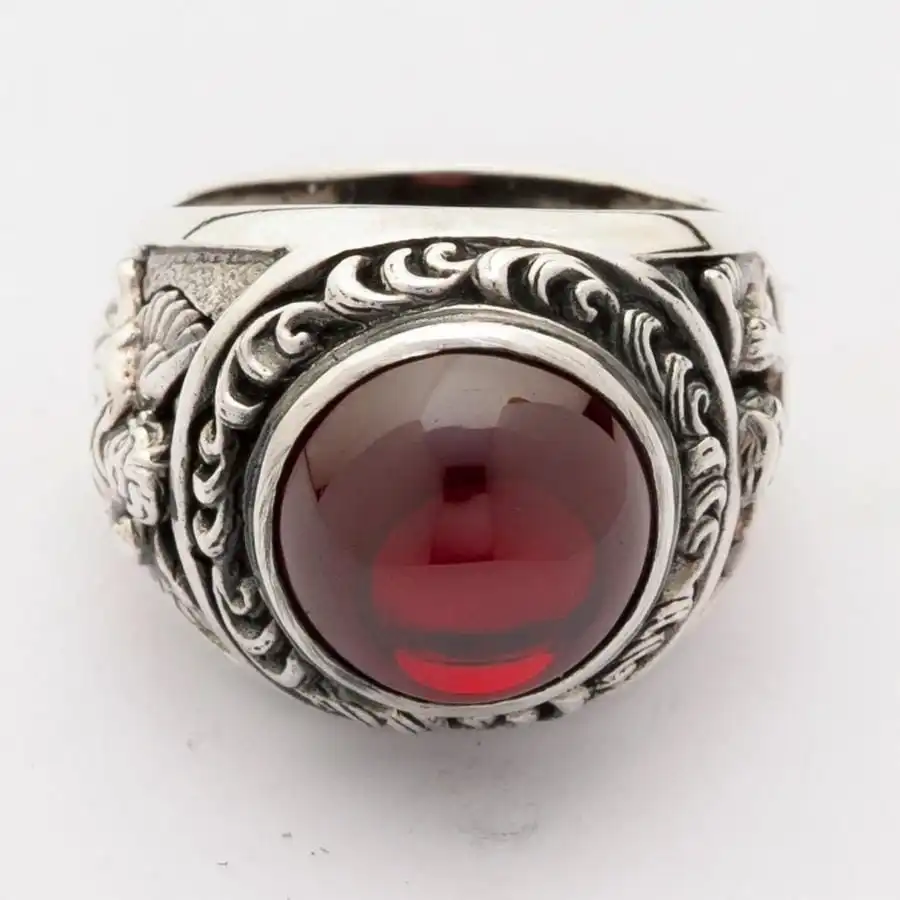 - Cabochon red stone measures: 14mm x 14mm