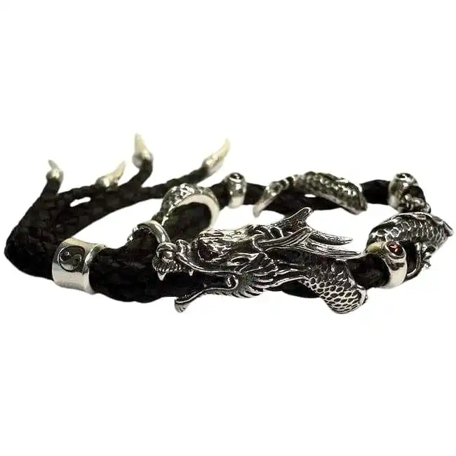 This piece is designed for that luxurious feel. The solid Sterling silver charms add a delightful weight with soft, premium handmade braided leather. The bracelet fastens with a pull tie and dragon claws that tip the leather strap ends. Wear on its own – this accessory is sure to garner many a compliment in no time.