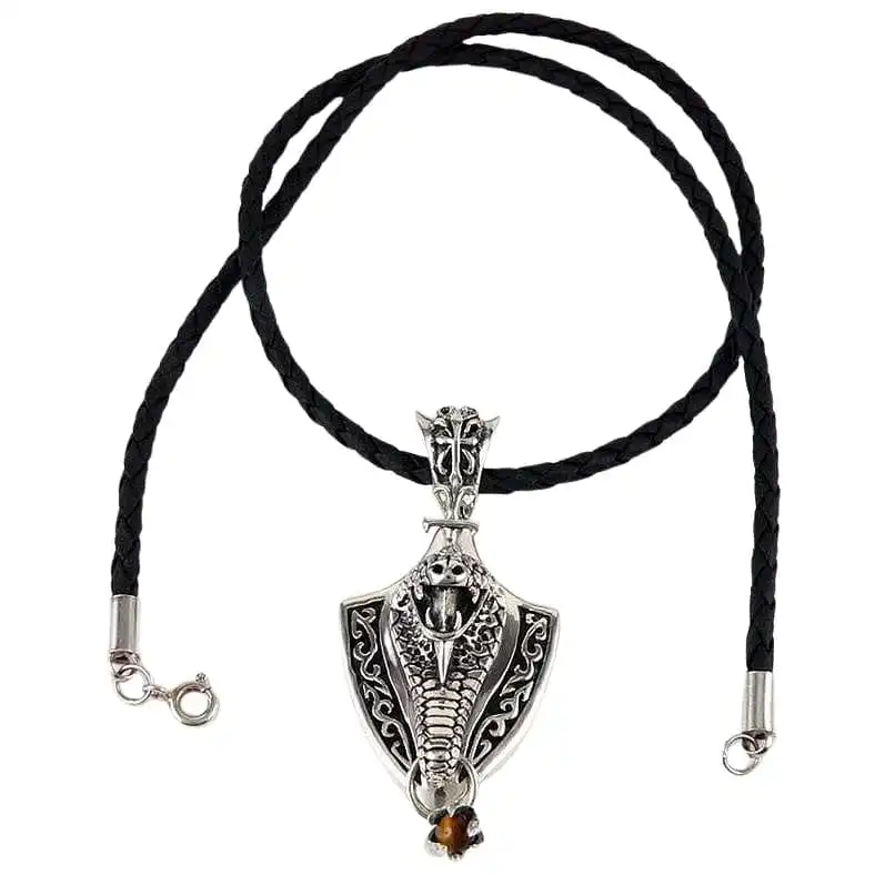 KING COBRA BROWN STONE STERLING SILVER SNAKE PENDANTS & LEATHER NECKLACE ~NEW