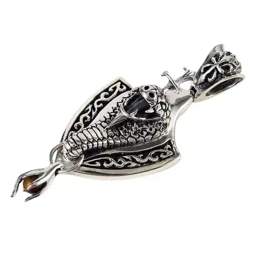 A symbol of immortality and transformation, our Snake Pendant draws on mythical inspiration. It captures the impressive prowess of a poised cobra, ready to attack at the flick of a finger. An animal of such power and presence, it cannot be ignored, so this piece takes centre stage at any event.