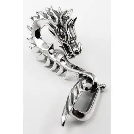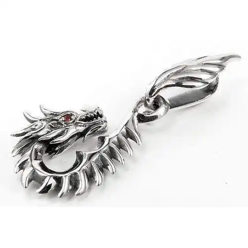 Snarling and snaking its way around the chain, our silver Gothic Dragon Hook Pendant is a one-of-a-kind, custom piece. Crafted by our skilled silversmiths, it draws design ethos from mythical tales where fire-breathing beasts soar through the skin, seeking out their prey. The slinking dragon curls back on itself and glares out with a deep garnet red stone embellished into the eye.