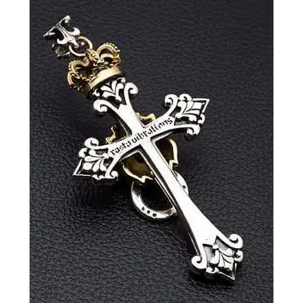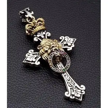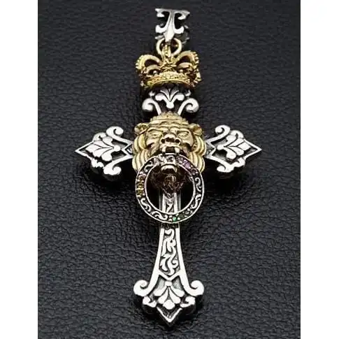 ROYAL CROWN LION CROSS 925 STERLING SILVER MENS PENDANT ~NEW