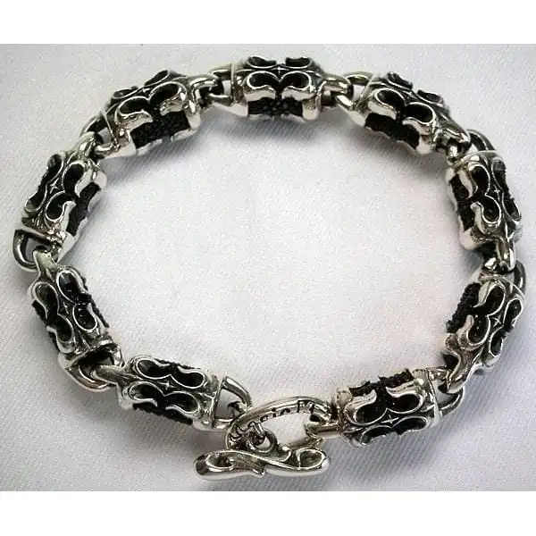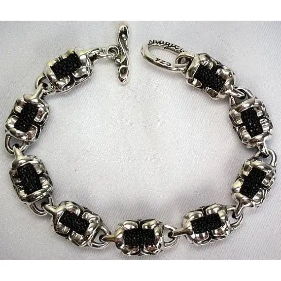 TRIBAL CROSS STINGRAY LEATHER STERLING SILVER BIKER BRACELET ~NEW