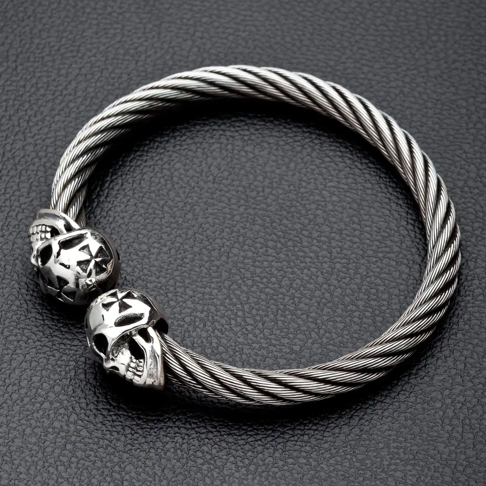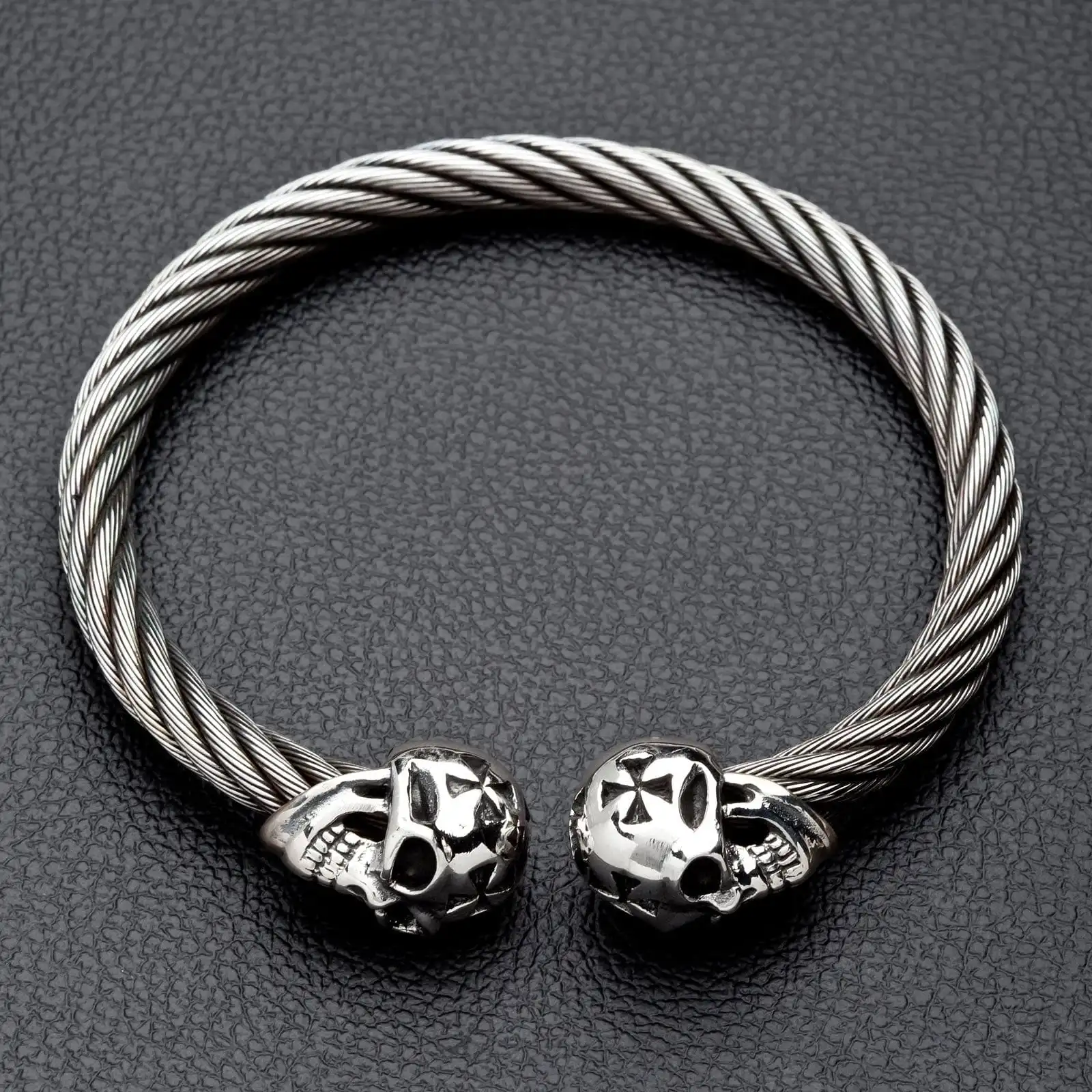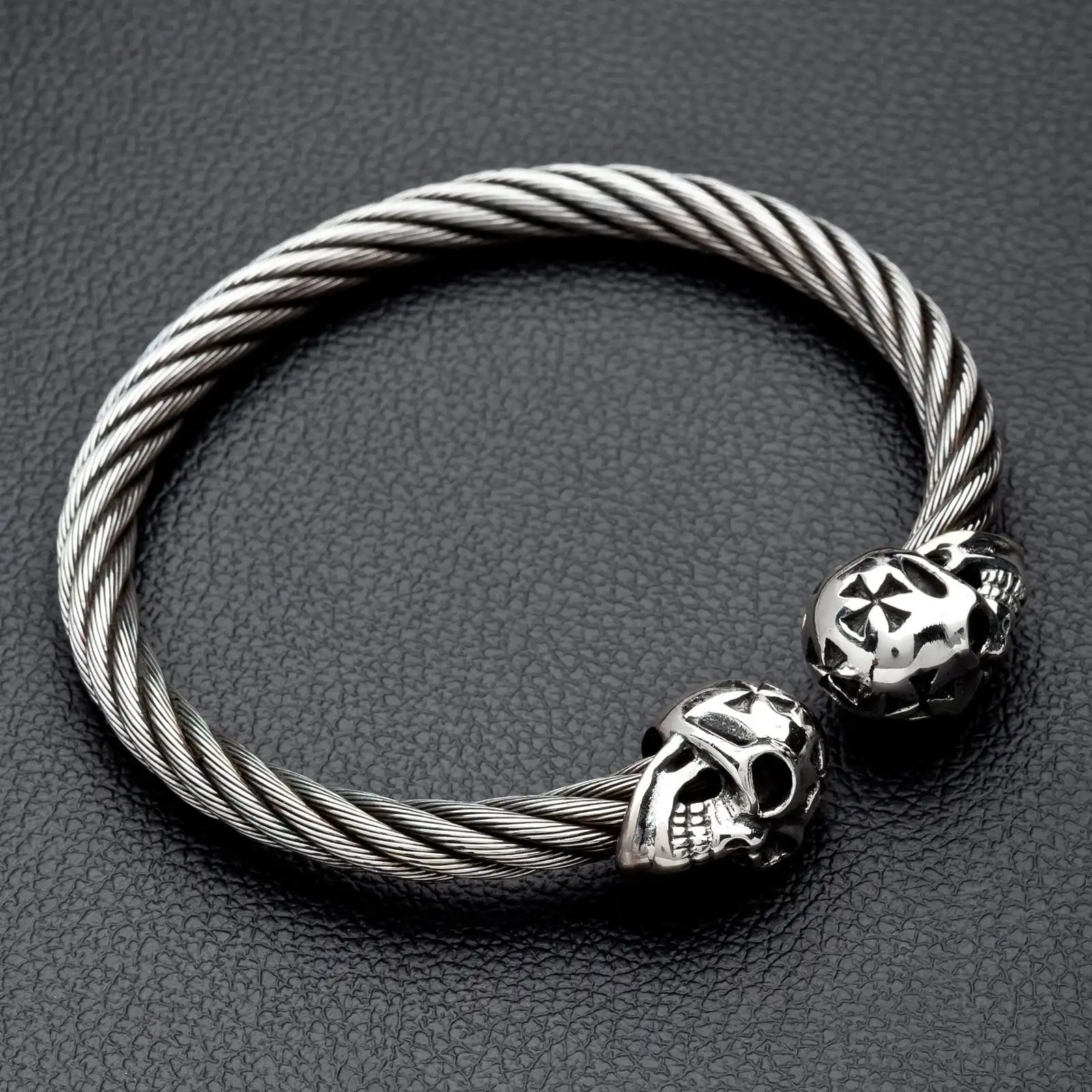 Shopping for bracelets on our site will leave you spoiled for choice as there are so many beautiful and unique designs. This sterling silver cuff bracelet is yet another example of how this kind of jewellery can look stylish and trendy at the same time.With a woven pattern all along, and finishing up with a skull with a cross on each side, it is certainly a very distinctive design. This cuff bracelet has an adjustable size of up to 9 inches and it weighs 50grams.