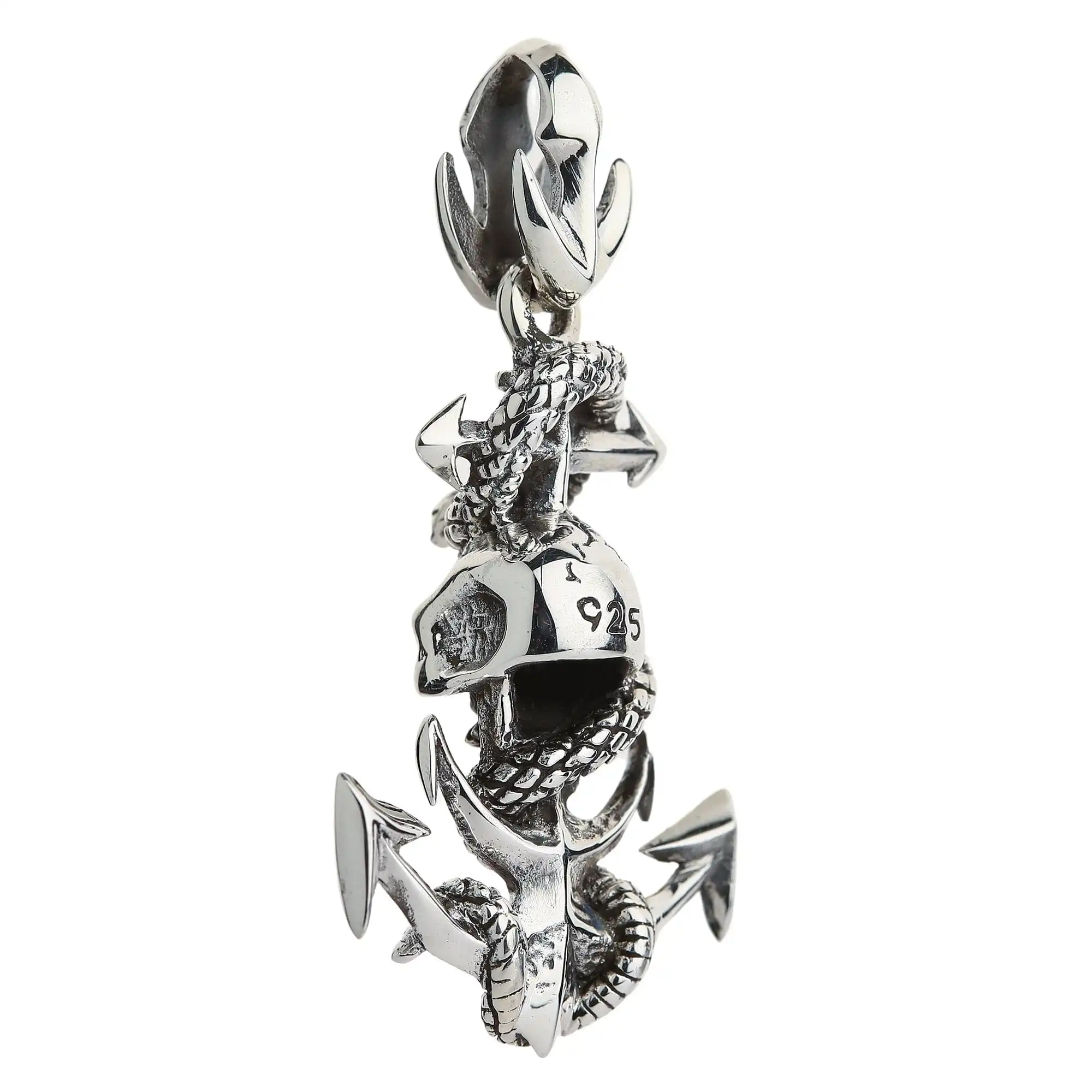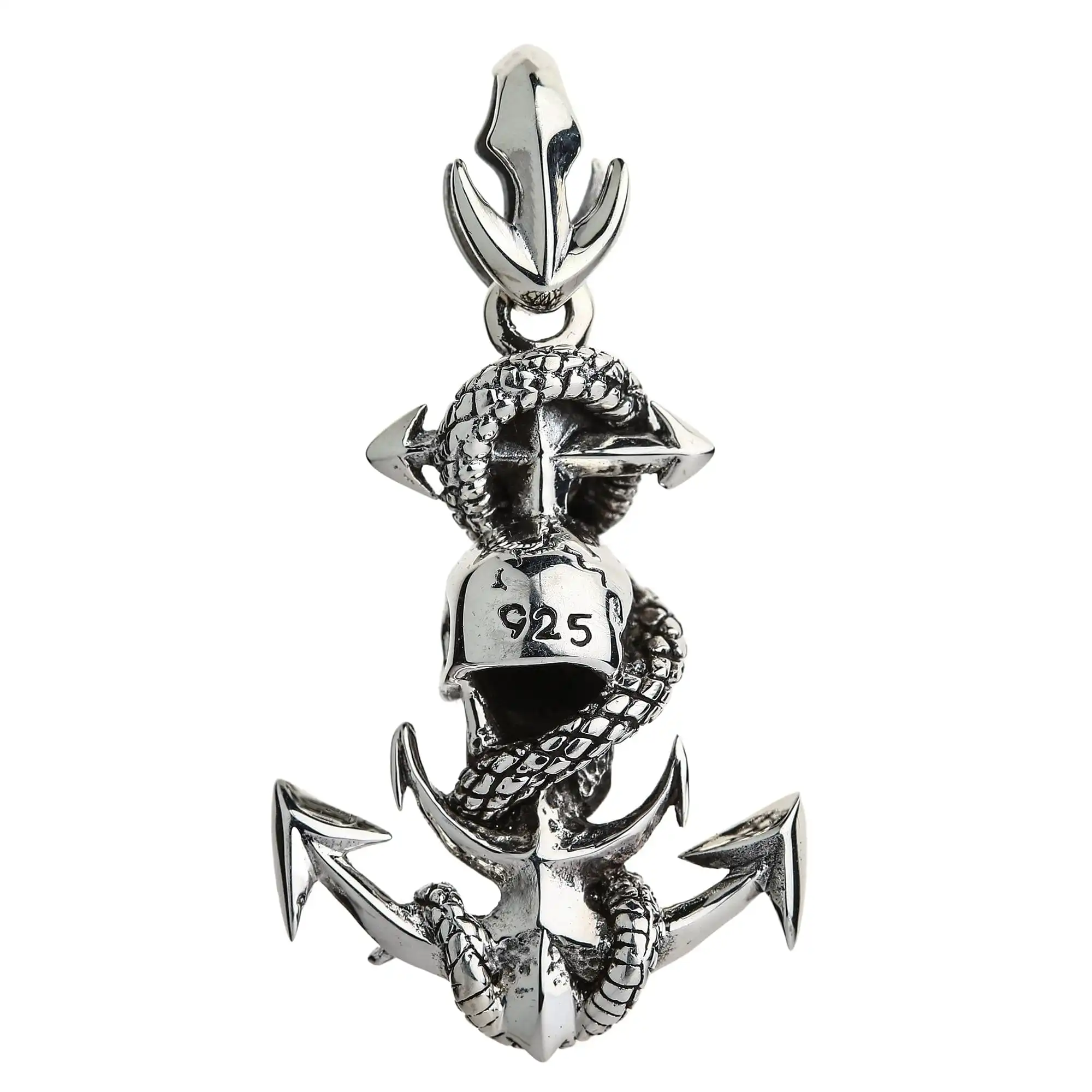 Sterling Silver Snake Rope Skull Anchor Pendant New