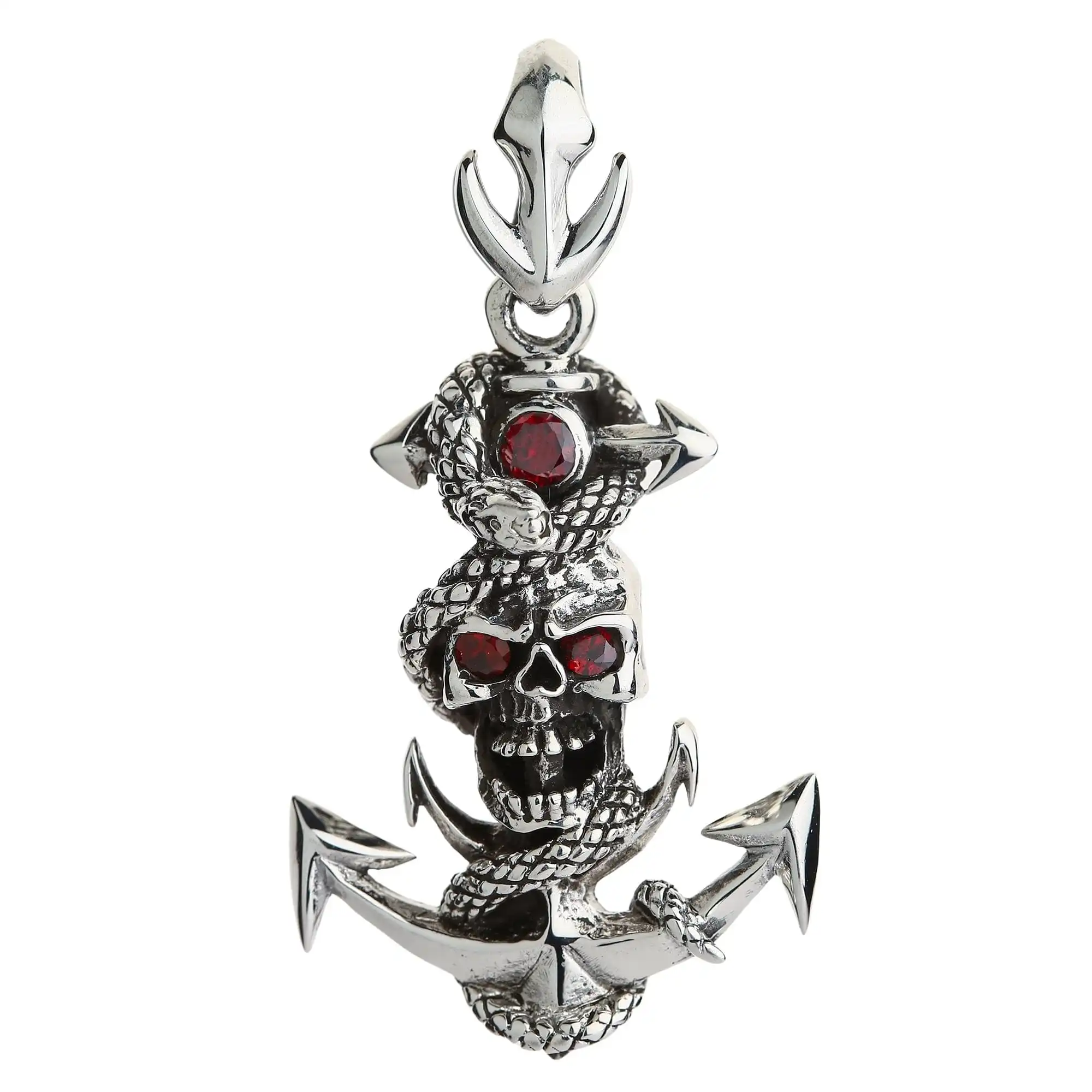 Our Snake Rope Skull Anchor Pendant is imbued with symbolism. Welded together, all these symbols form some of the coolest biker ornaments out there.