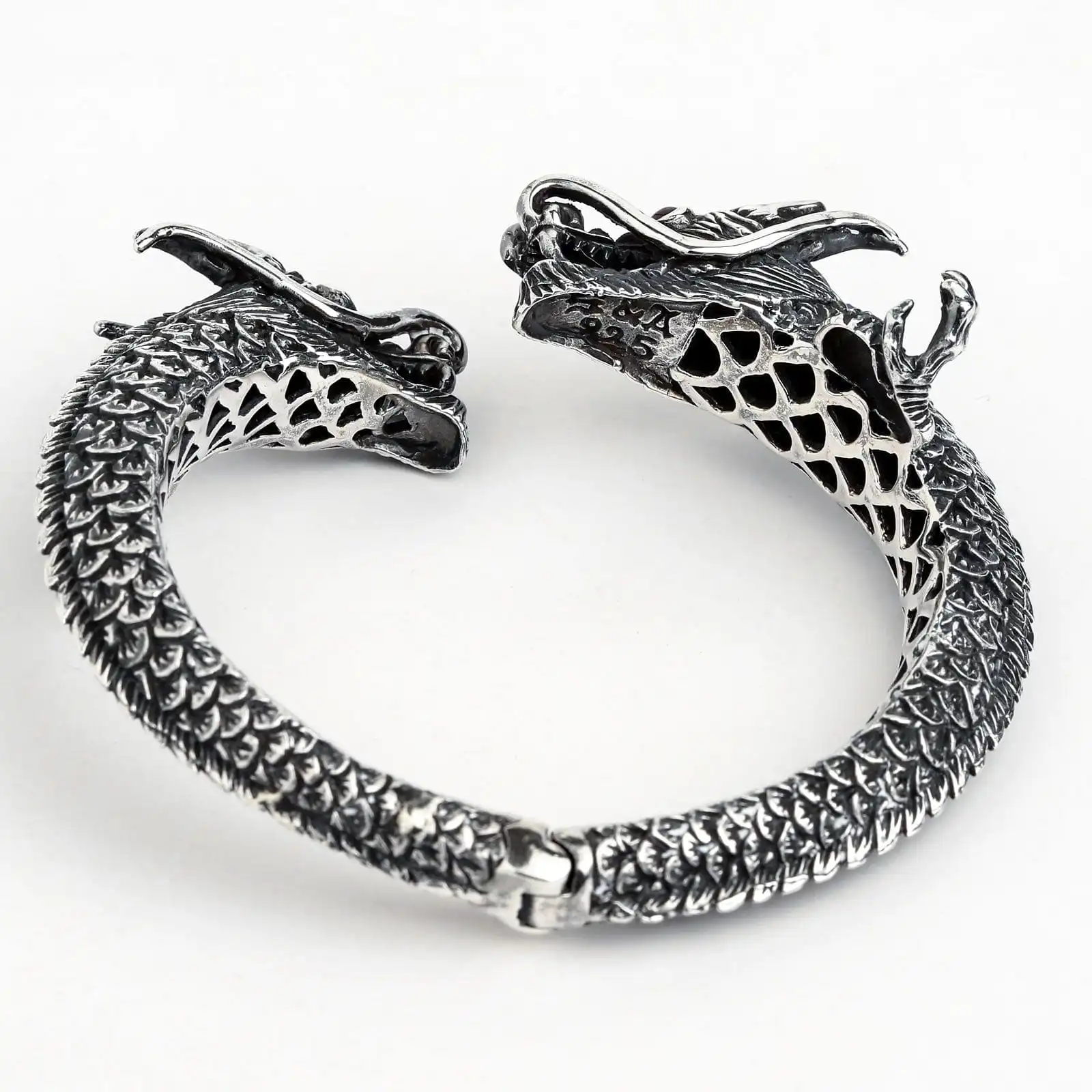 Because we made this piece of solid silver, you’ll be amazed by its weight of 80 grams. Thanks to the width of 15 mm, it looks both impressive and stylish on a strong man’s wrist. Dragon jewelry looks grand with casual, relaxed, biker, and Gothic styles, and this bracelet is not an exception. We made it by hand, just like any other piece of jewelry in our collection, enabling you to enjoy the highest standards of craftsmanship and audacity in every line.