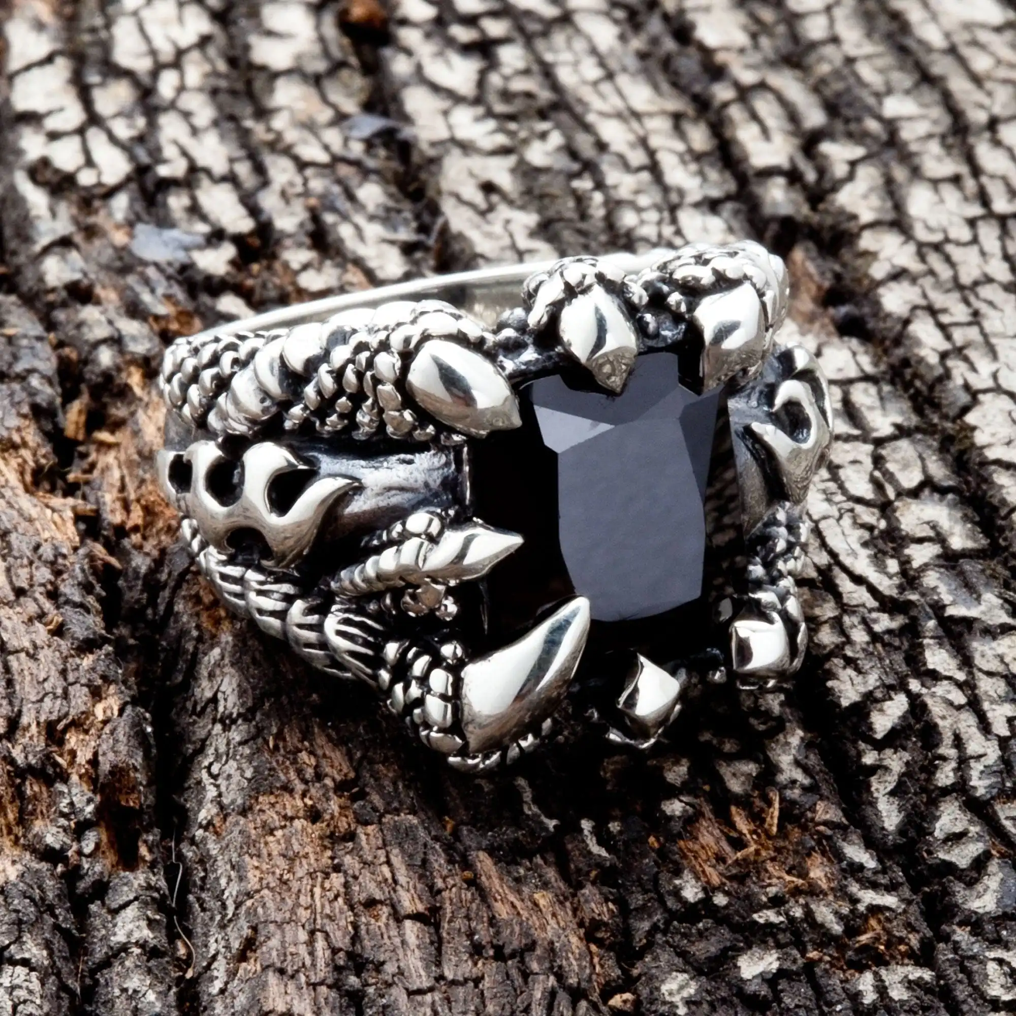 925 Sterling Silver Black Onyx Gothic Claw Ring