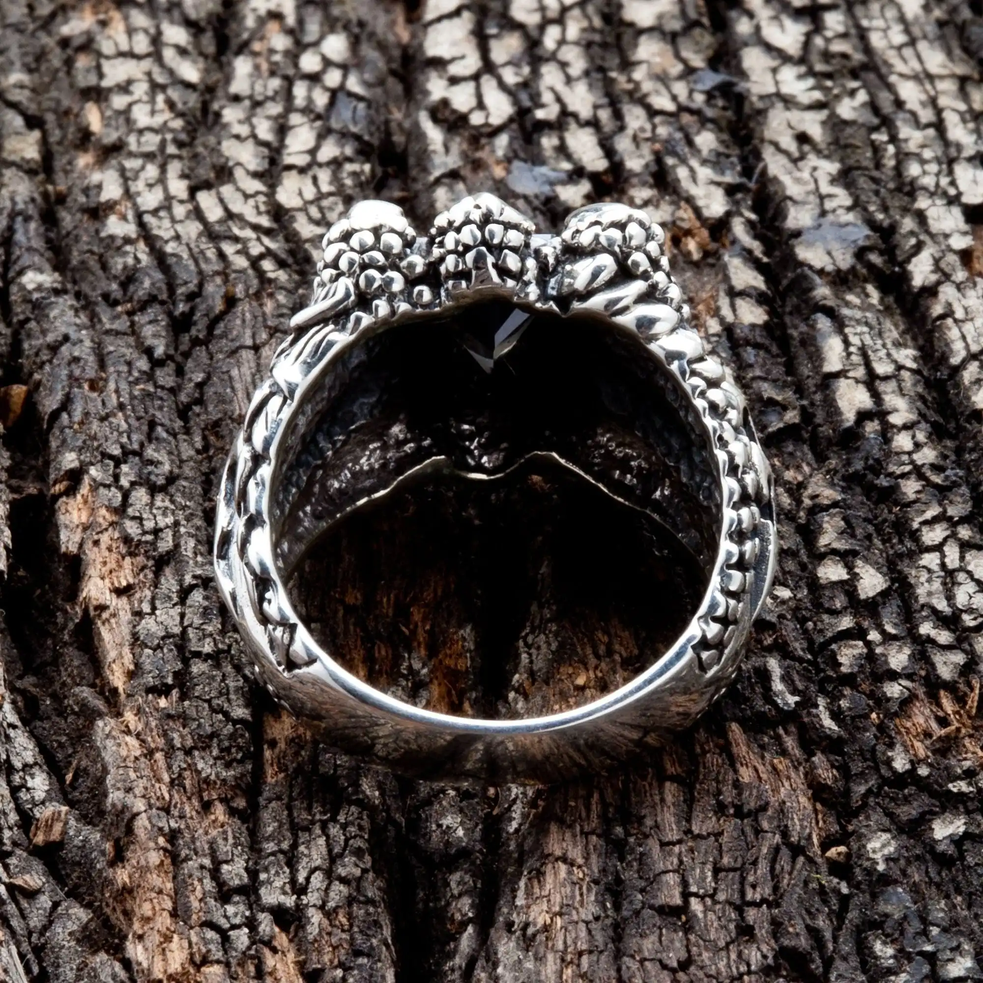 The entire ring is crafted from solid sterling silver and has been finished by hand. Areas of the silver have been darkened expertly to accentuate details including the dragon’s scales. It can be crafted in most sizes and sits well on any finger – although standing the most boldly on the middle finger or thumb.
