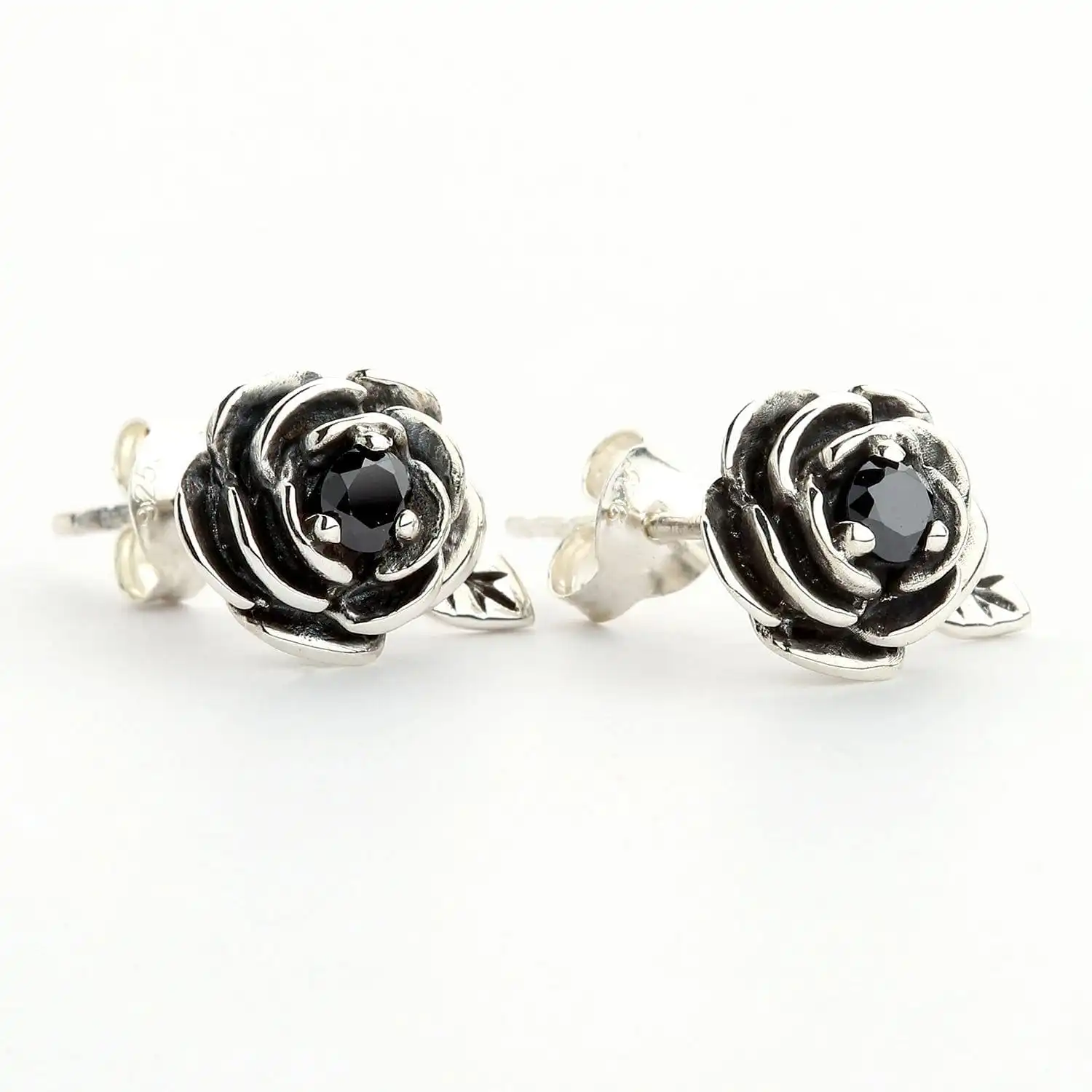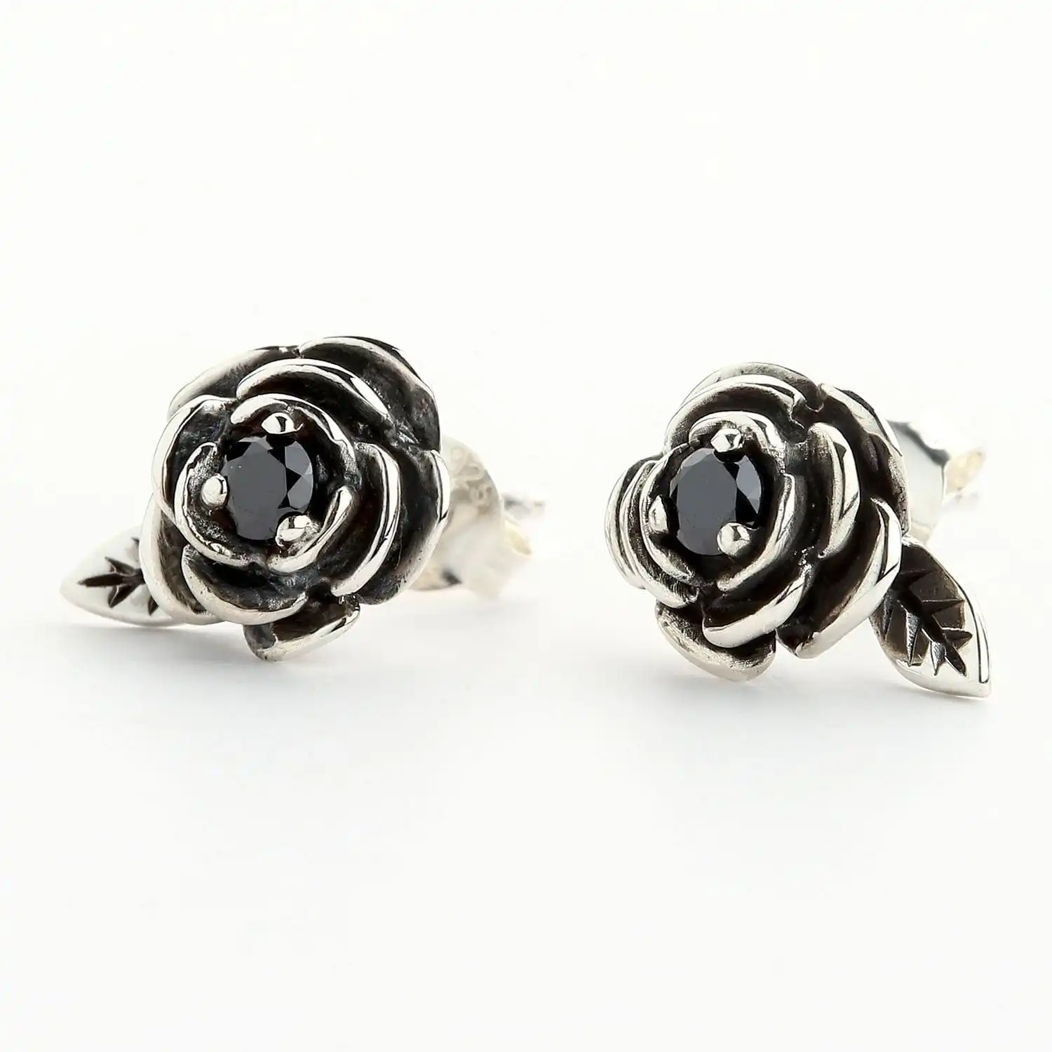 Imbued with Gothic chic, these Sterling Silver Black Rose Earrings are exactly the right thing to describe your style as dark and elegant. These studs by Bikerringshop are easy to wear but hard to overlook.