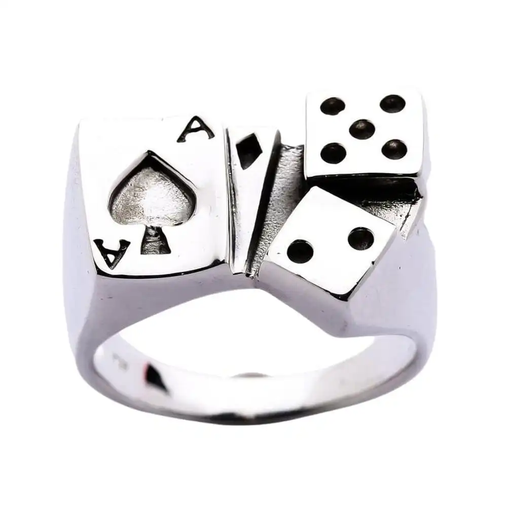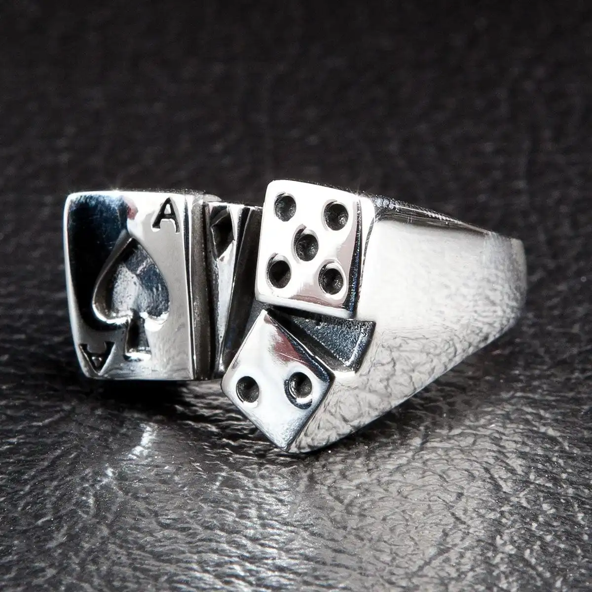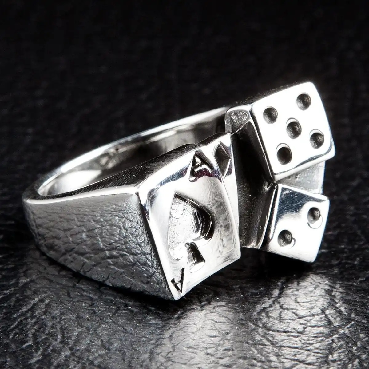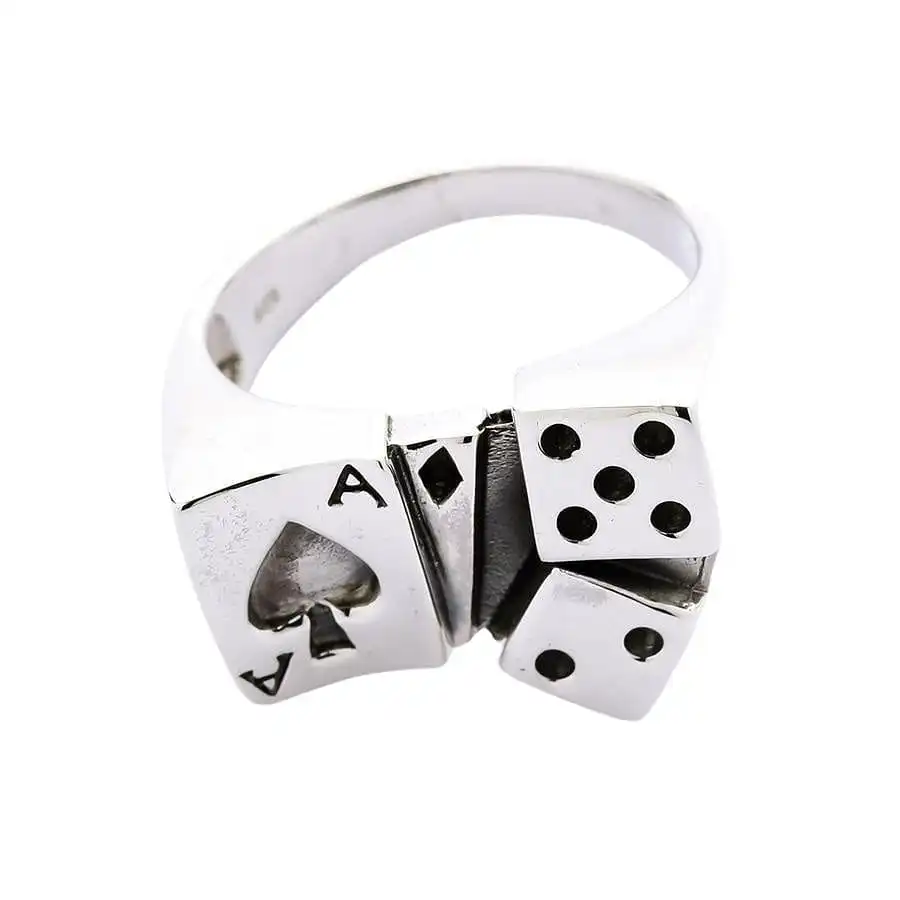 925 Sterling Silver Card Dice Lucky Gamble Ring
