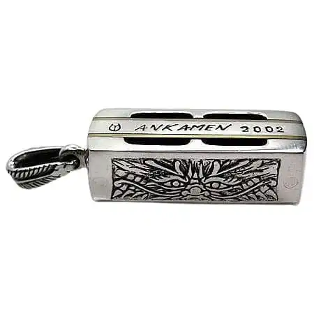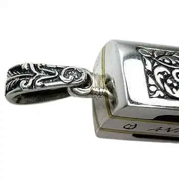 A piece you’ll show off again and again, our Harmonica Pendant is both striking and musical. For those moments that need a slight tune, this unique pendant doubles as a fully working harmonica. Externally, it has been exquisitely engraved with the onlooking gaze of a tribal demon, flourished in petals.