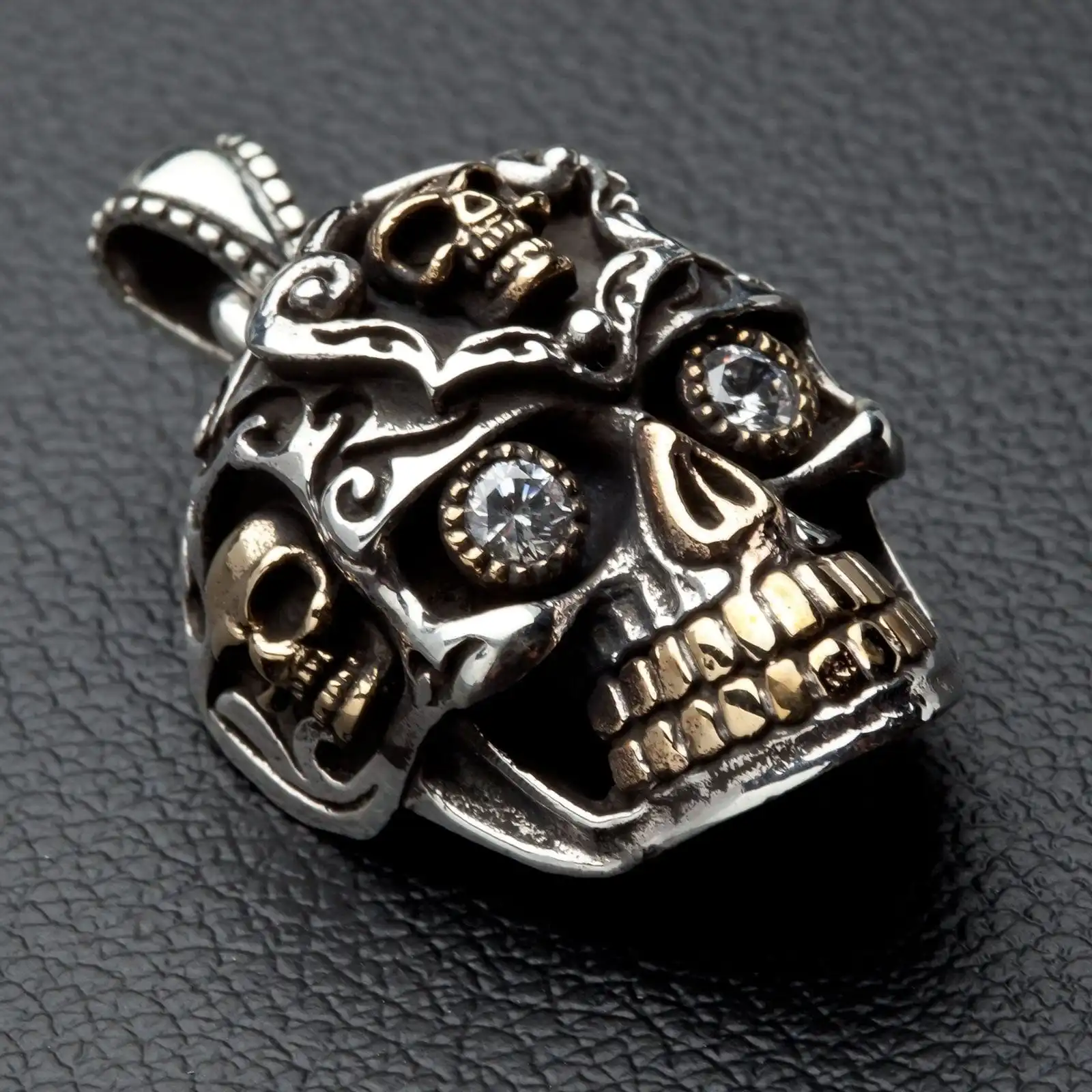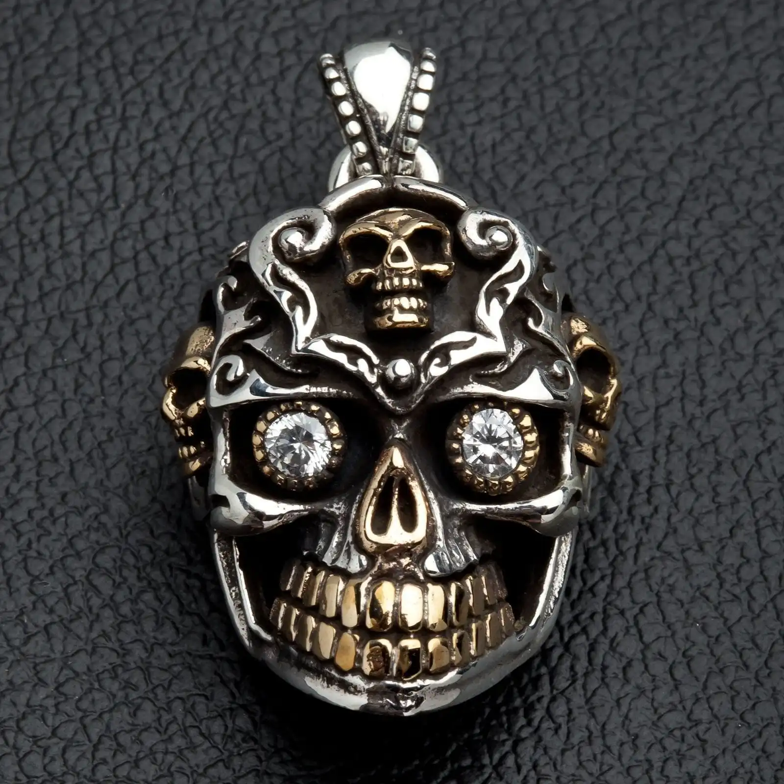 CLEAR EYES DEATH SKULL STERLING SILVER MENS PENDANT ~NEW