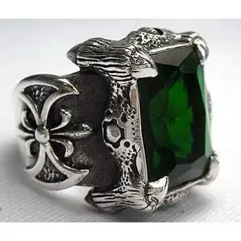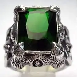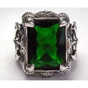 Sterling Silver Emerald Green Dragon Claw & Axe Men’s Ring