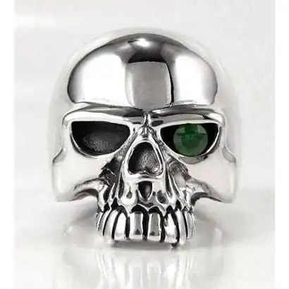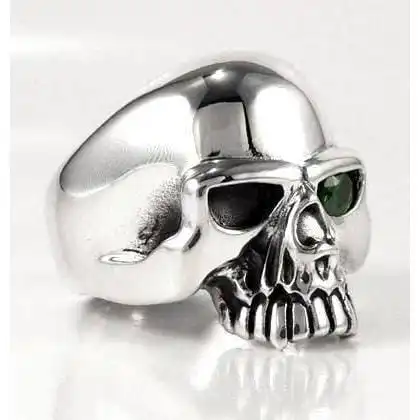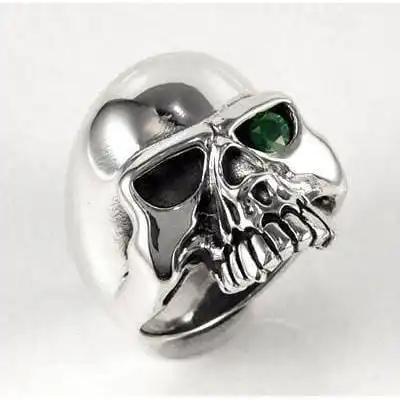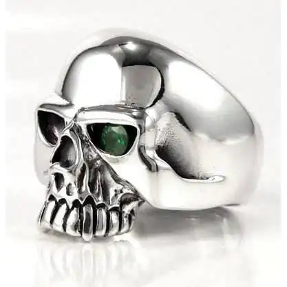 Classic 925 Sterling Silver Emerald Green Eye Skull Men’s Ring