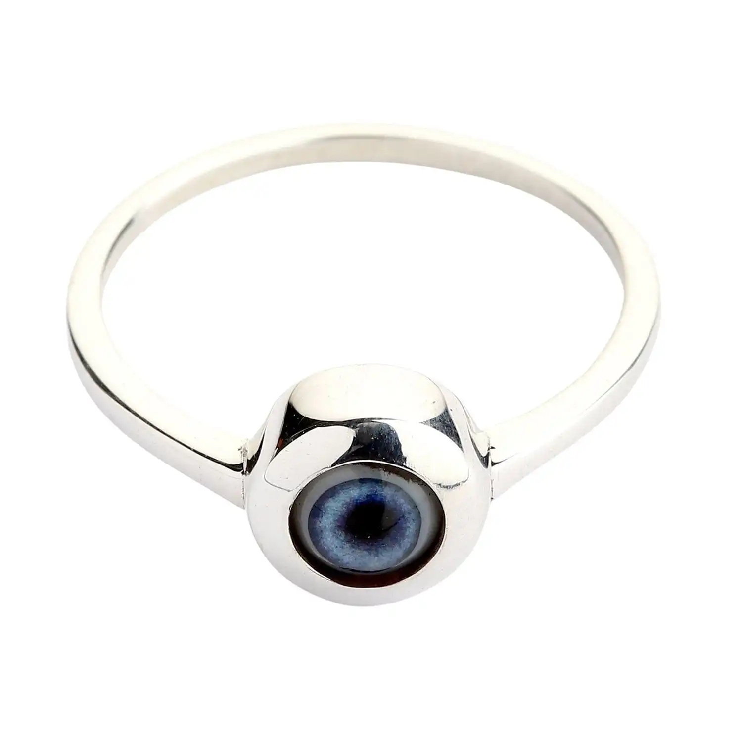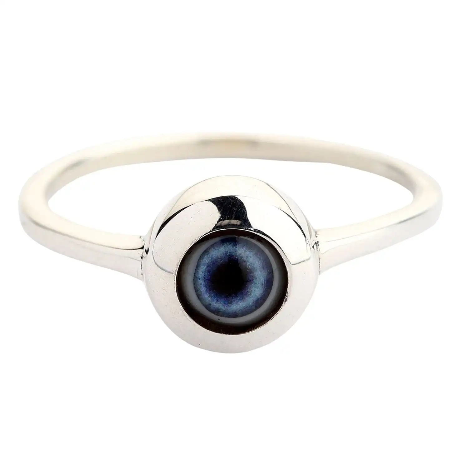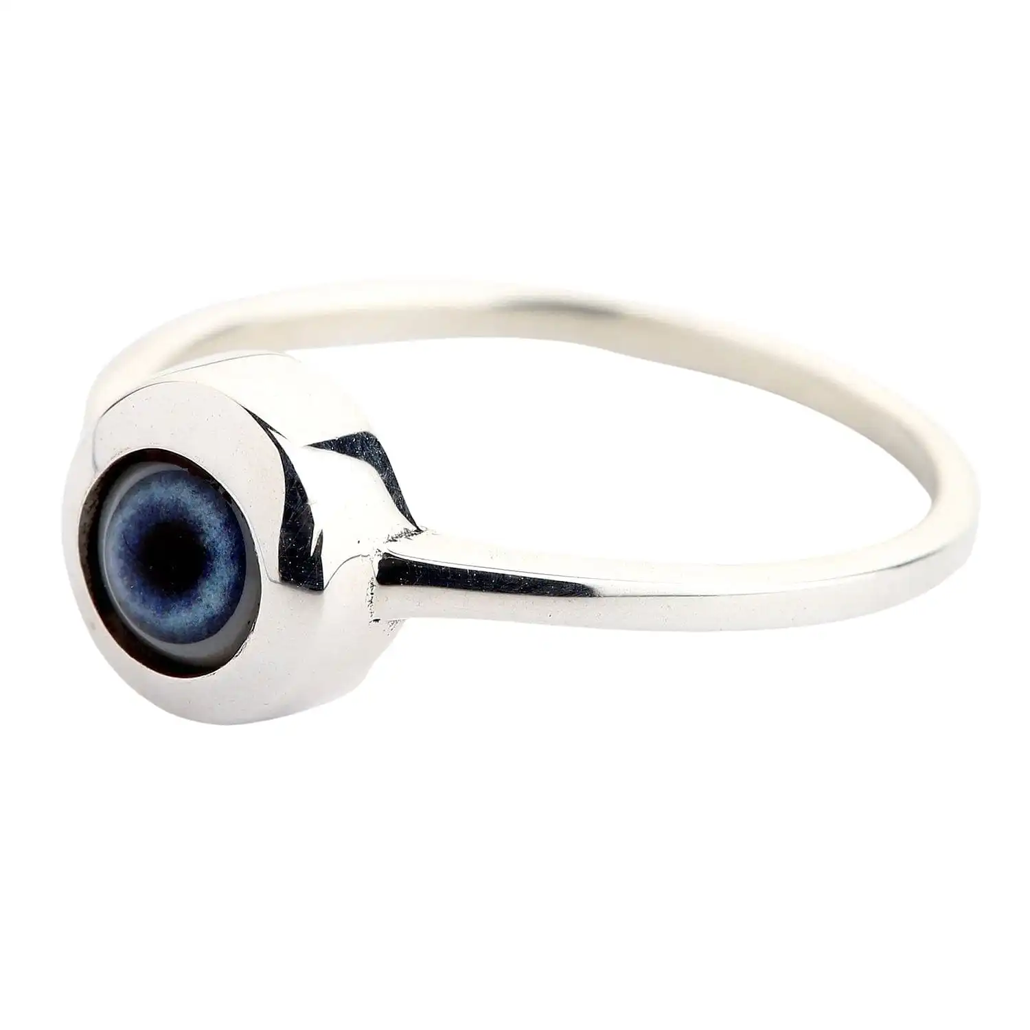 This Evil Eye isn’t that evil. In fact, it brings good and protects against adversity. If you’re scared of jinxes and curses, you will find protection in this talisman ring. It will also come in handy if you enjoy going to thematic parties and dressing up for Halloween.The ring is crafted of durable and noble sterling silver. We love the ease of maintenance and versatility associated with it. When it comes to you, we are sure you’ll appreciate its modest beauty and affordable price. To present the precious metal in the best light, our professional silversmiths meticulously polished it using only hand tools. Every Evil Eye ring is crafted exclusively by hand in order to preserve its individuality and enhance its protective properties as a talisman.